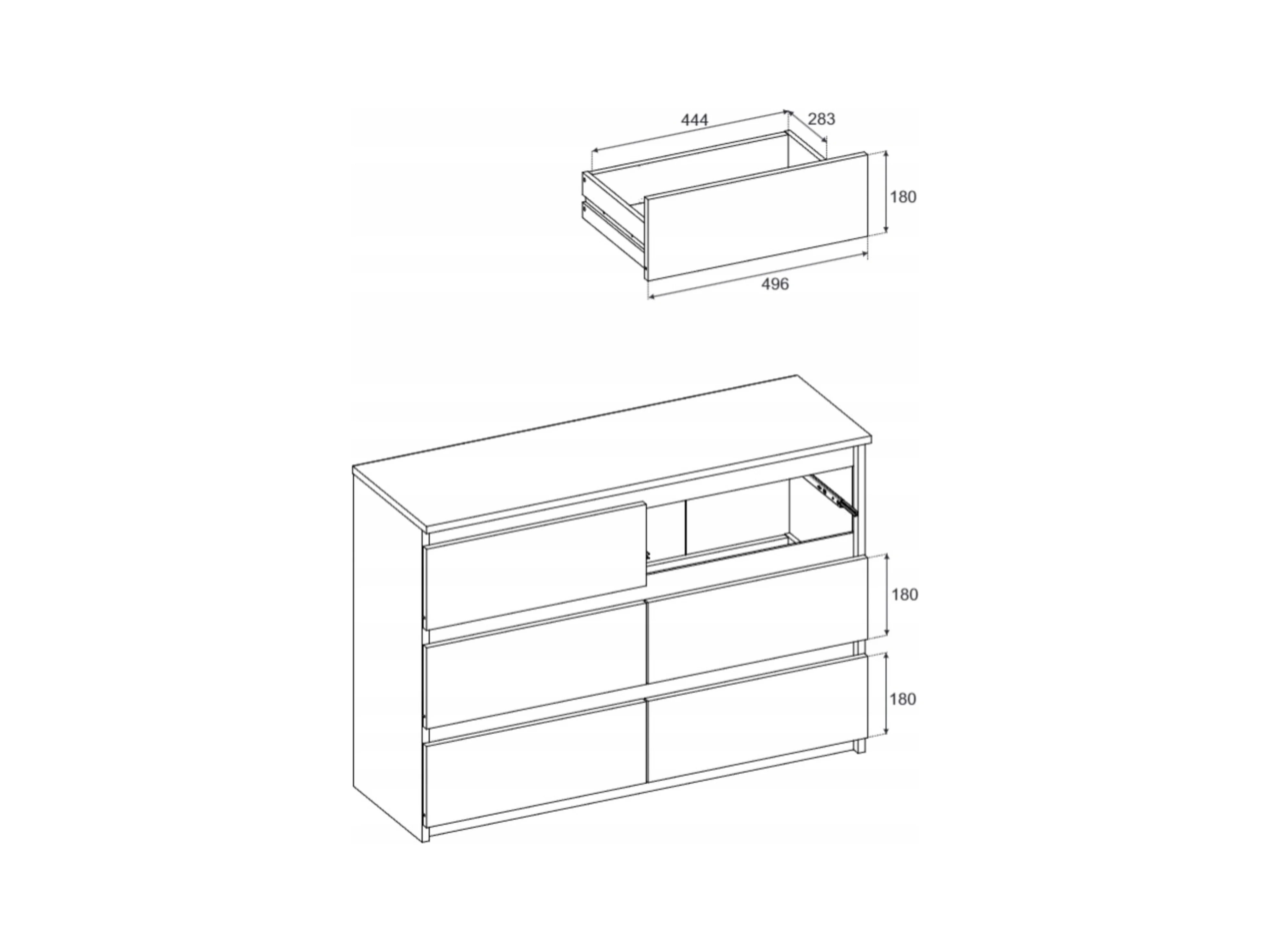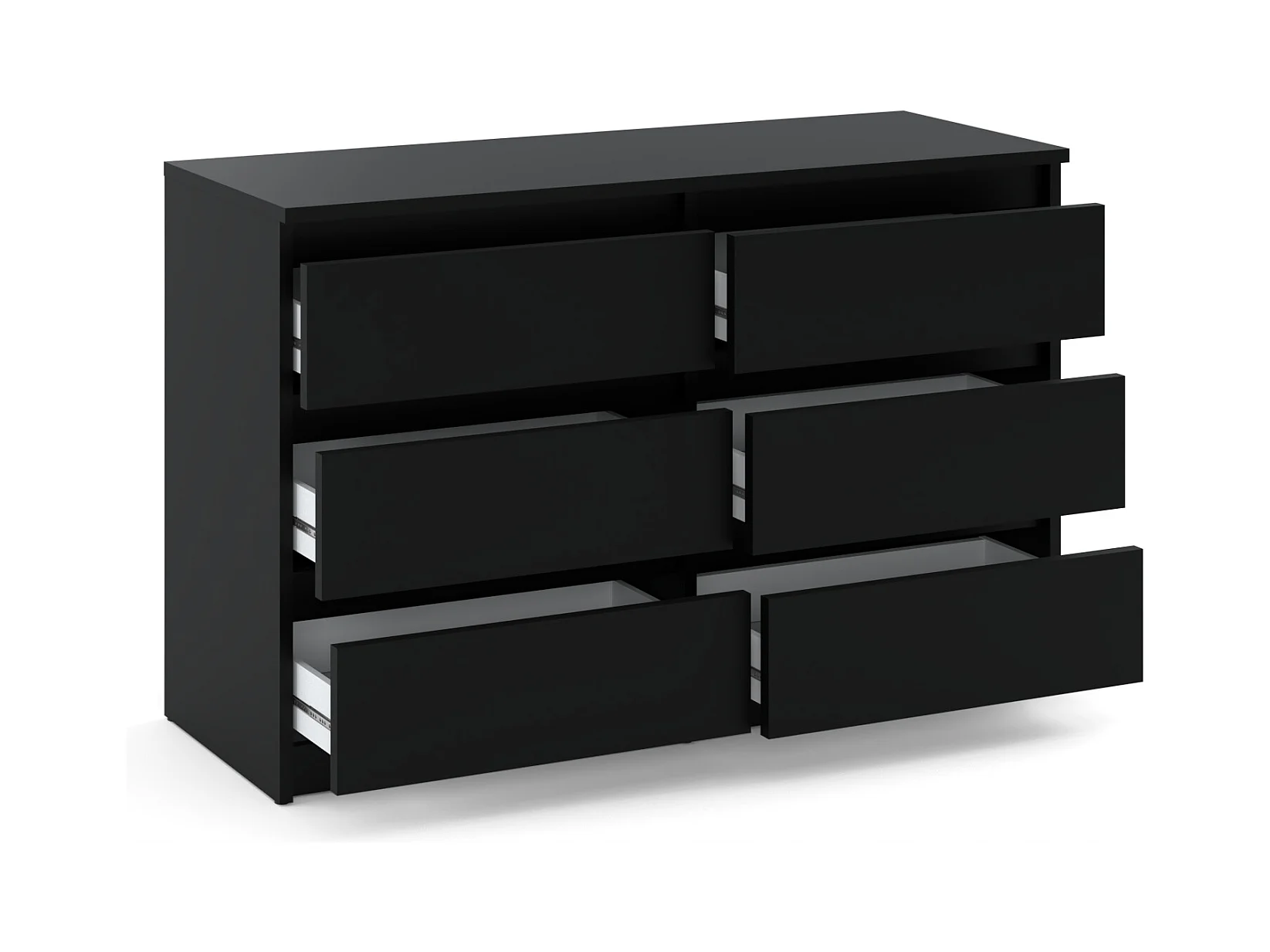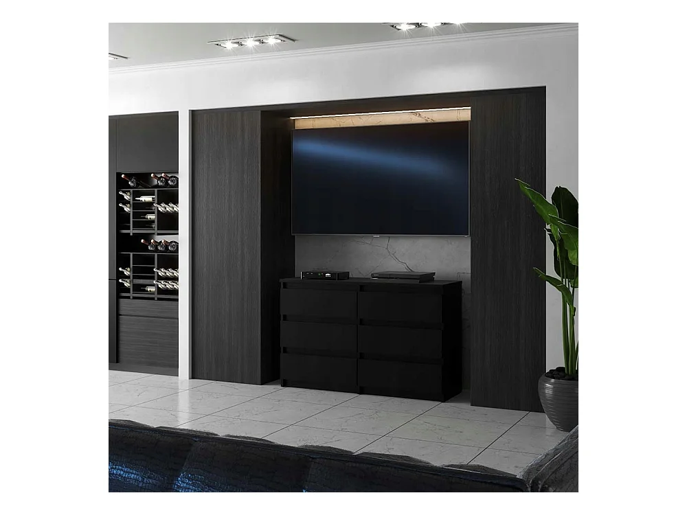 Commode 6 Tiroirs : Noir Mat, 120 x 39 x 79 cm