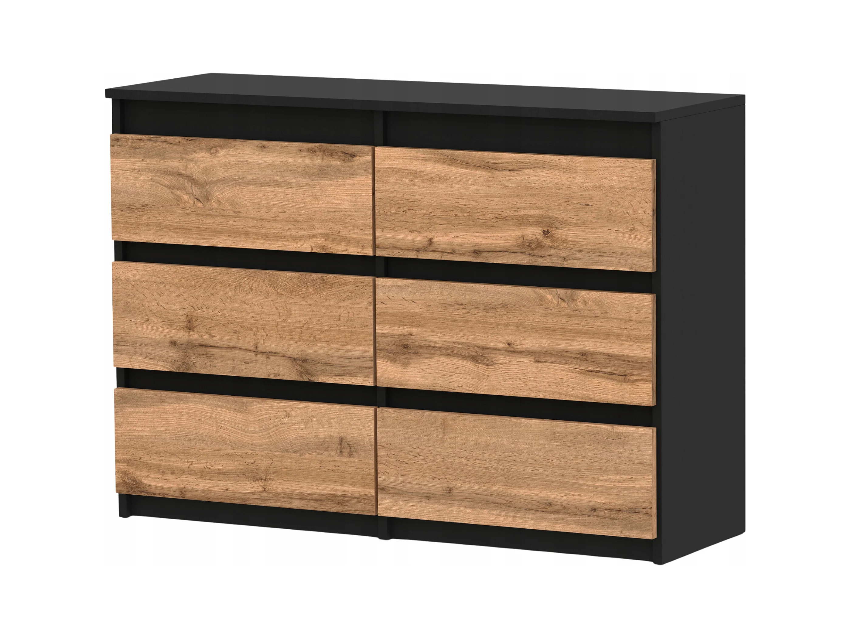Commode 6 Tiroirs : Noir Mat / Chêne Wotan, 138 x 39 x 79 cm