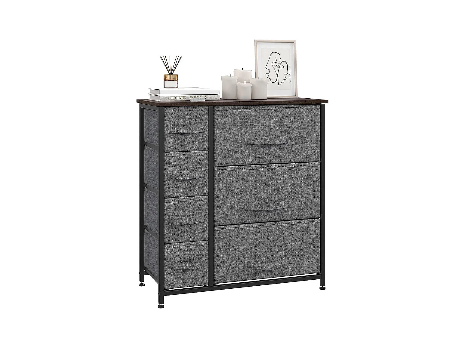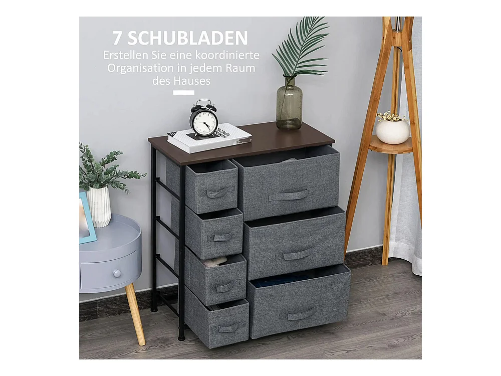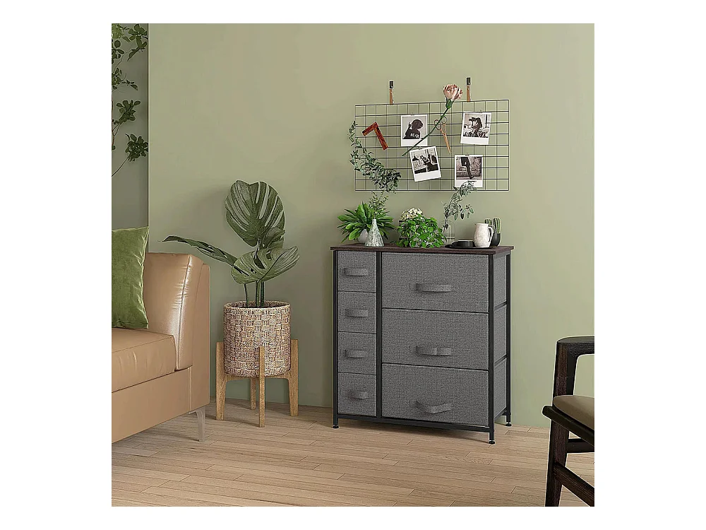 Commode pliante à 7 tiroirs en tissu, fabriquée en tissu non tissé, avec structure métallique, dimensions : 63,5 x 30 x 71 cm, couleur gris foncé.