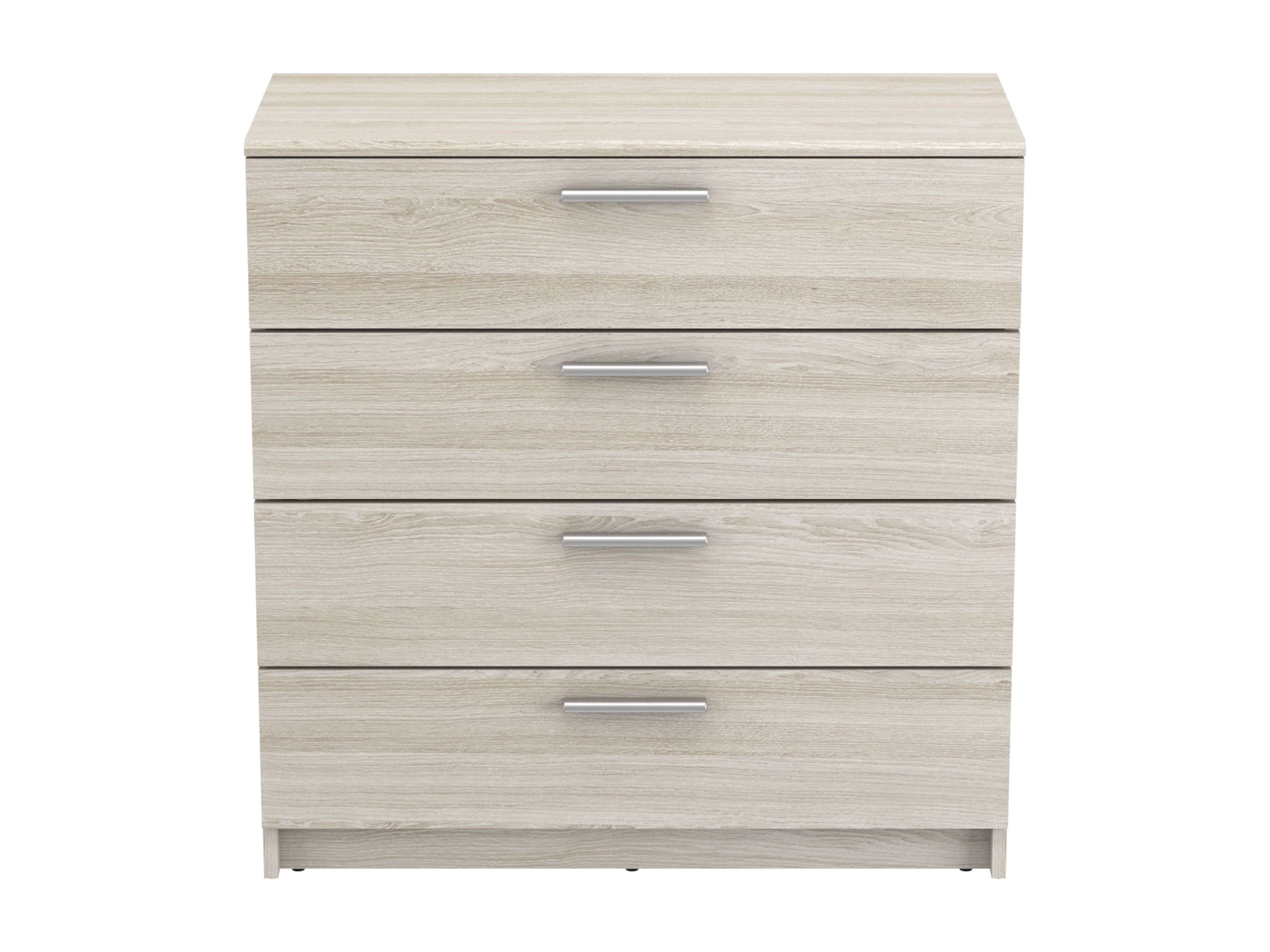 Commode 4 tiroirs avec glissières métalliques, blanc mat Tibet ou chêne cambrien, 74 x 78 cm