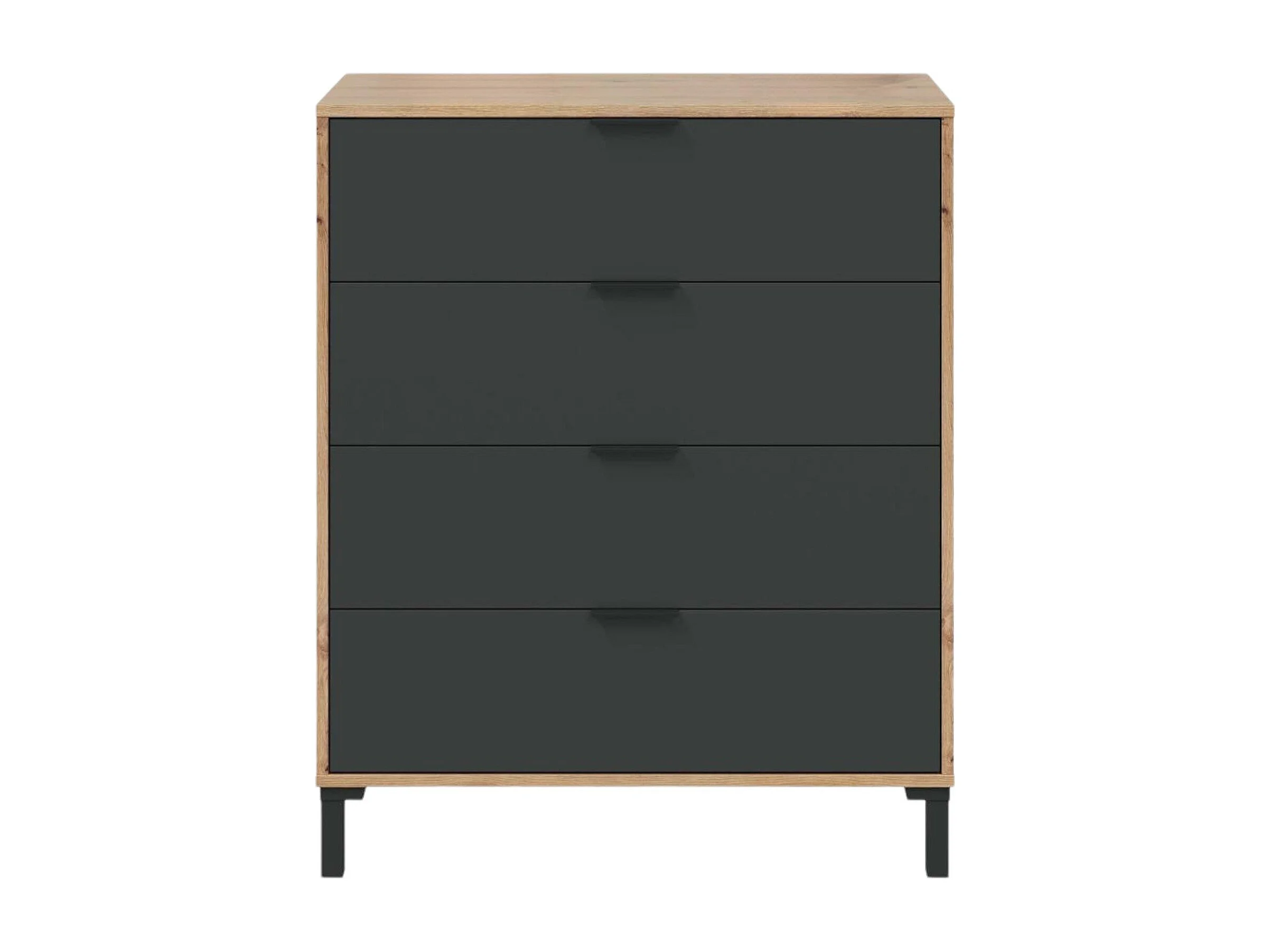 Commode Rochester, Commode à 4 tiroirs, Commode pour la chambre, Commode moderne, 76x40h94 cm, Chêne noué et Anthracite