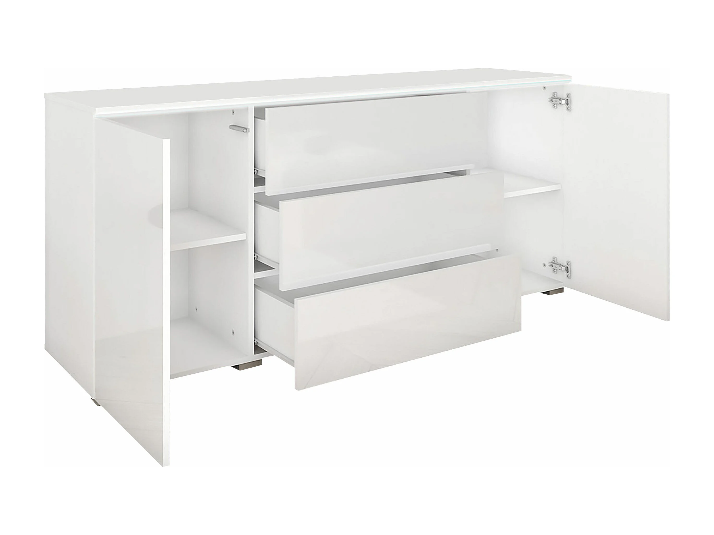 Commode Sarasota 142, Blanc brillant|Blanc, Tiroirs et portes, Nombre de tiroirs: 3, 66cm