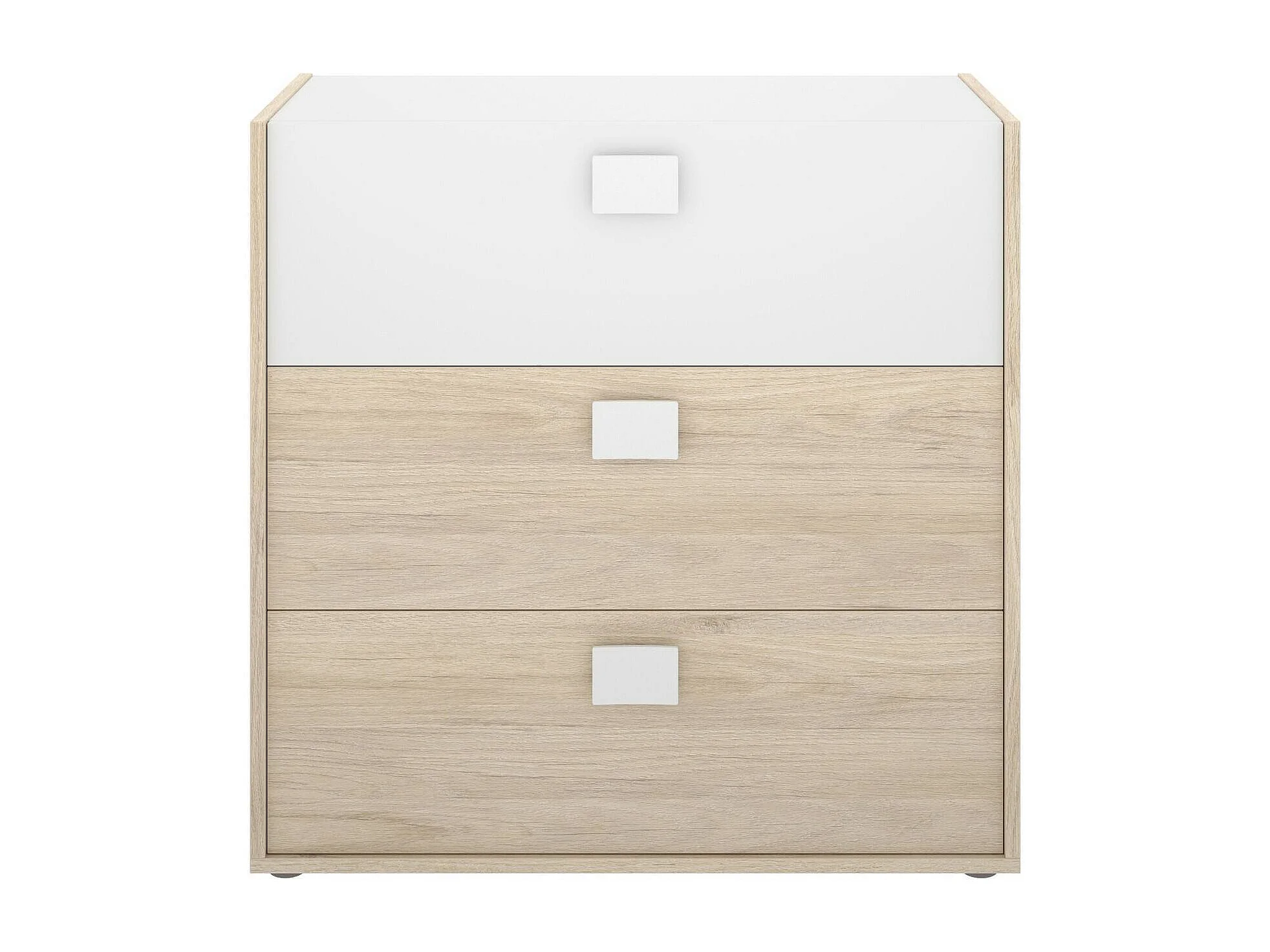Commode Sella, Commode pour la chambre, Commode avec 3 tiroirs, 80x43h81 cm, Chêne et Blanc