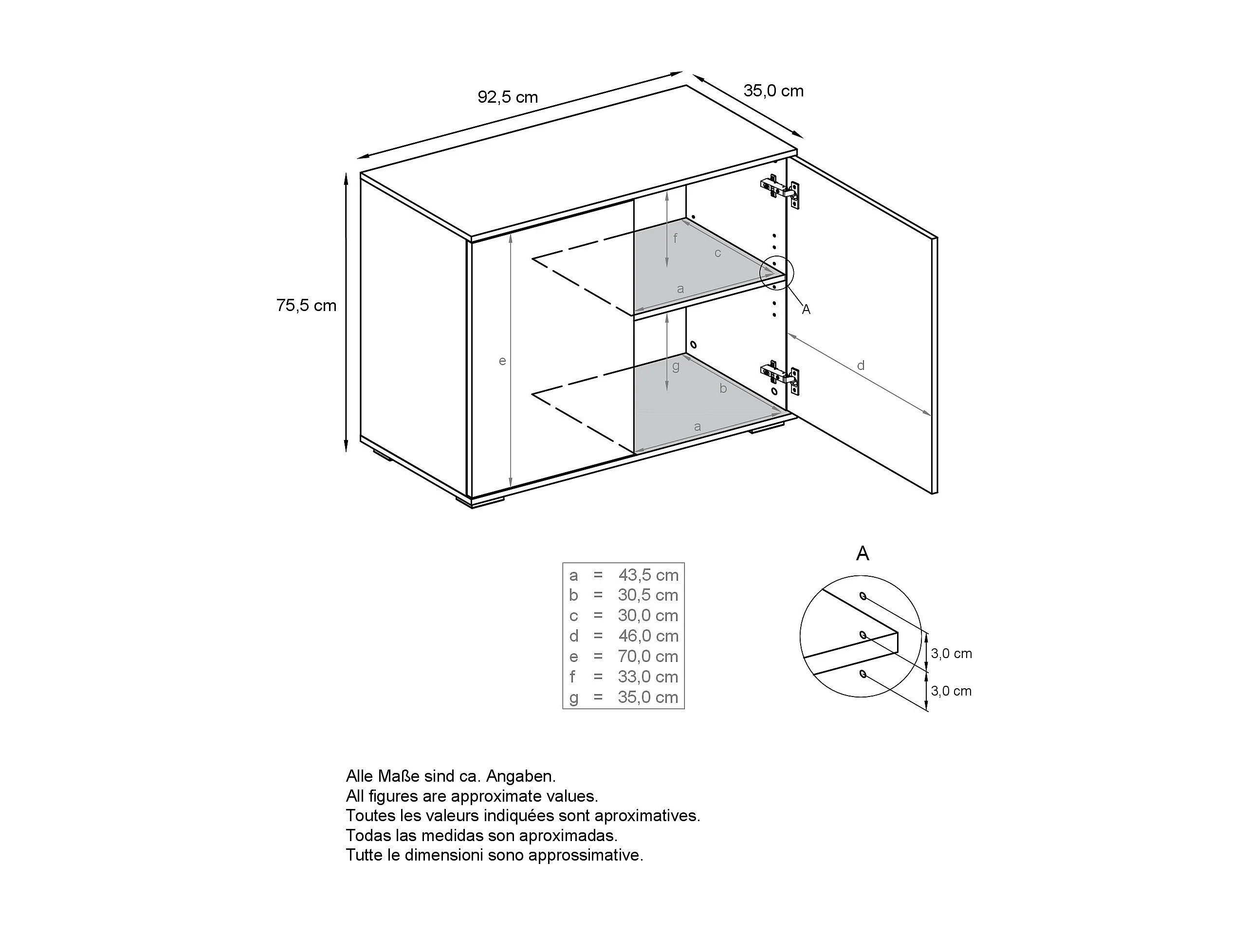 Commode Skadu V3, Buffet de Cuisine Moderne avec 2 Grandes Portes anthracite mat / gris haute brillance (92,5 x 84.5 x 35)