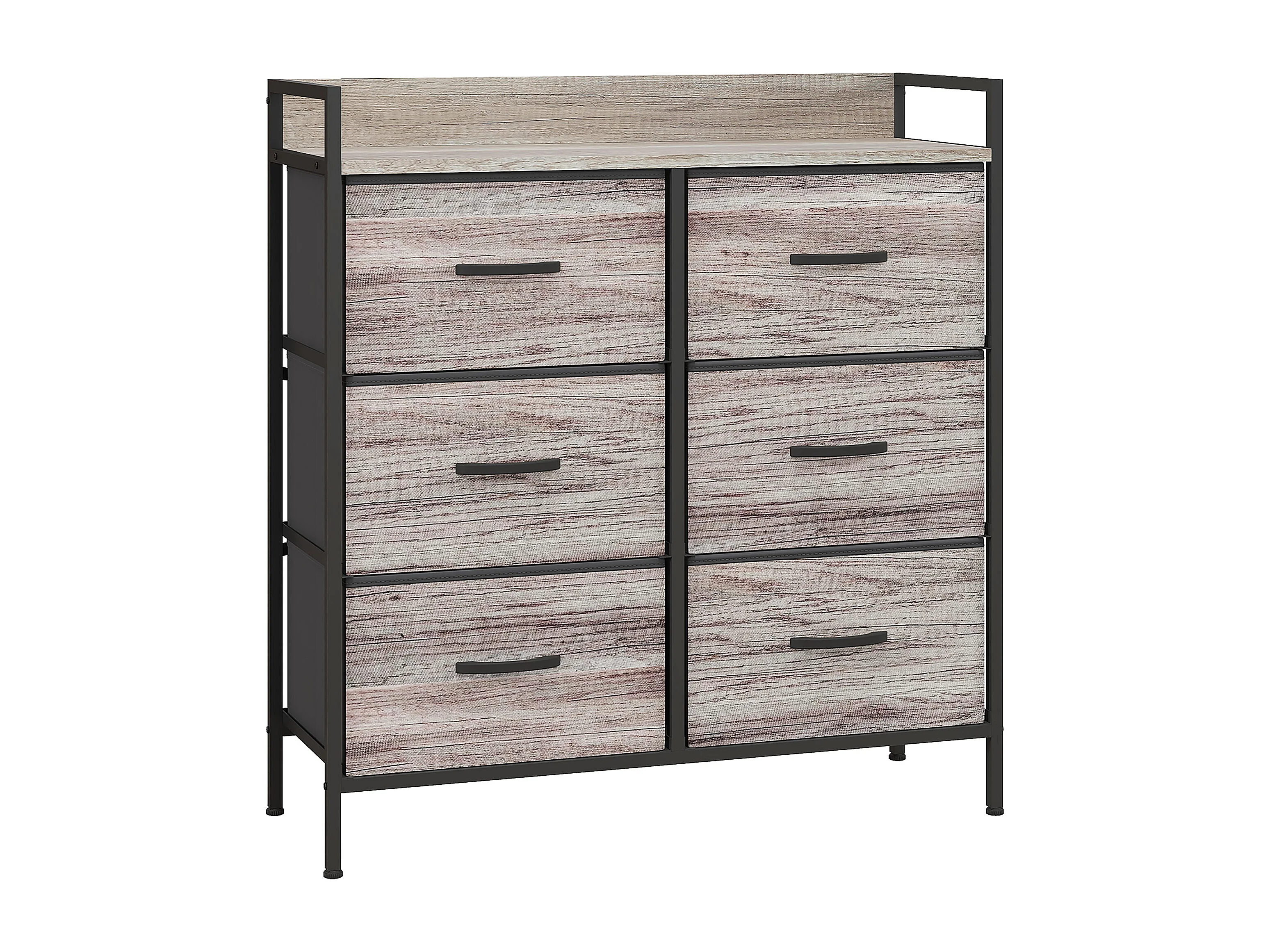 Commode style industriel - 6 tiroirs, étagère - châssis métal noir tiroirs non tissés effet bois gris
