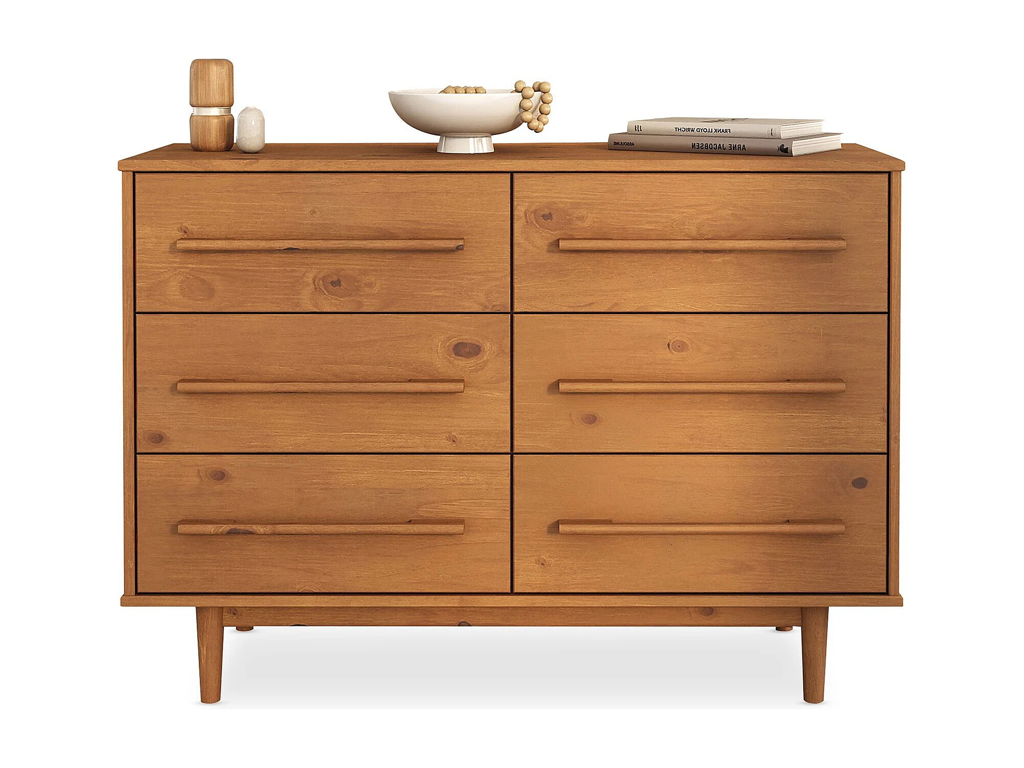 Commode TECCA L 111 cm avec 6 Tiroirs en Bois Massif Coloris Chêne, Meuble de Rangement pour Vêtements Design Scandinave