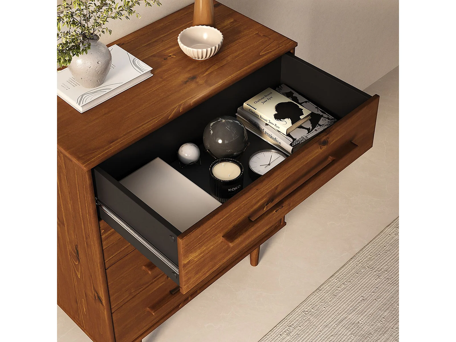 Commode TECCA L 80 cm avec 4 Tiroirs en Bois Massif Coloris Châtaignier, Meuble de Rangement pour Vêtements Design Scandinave