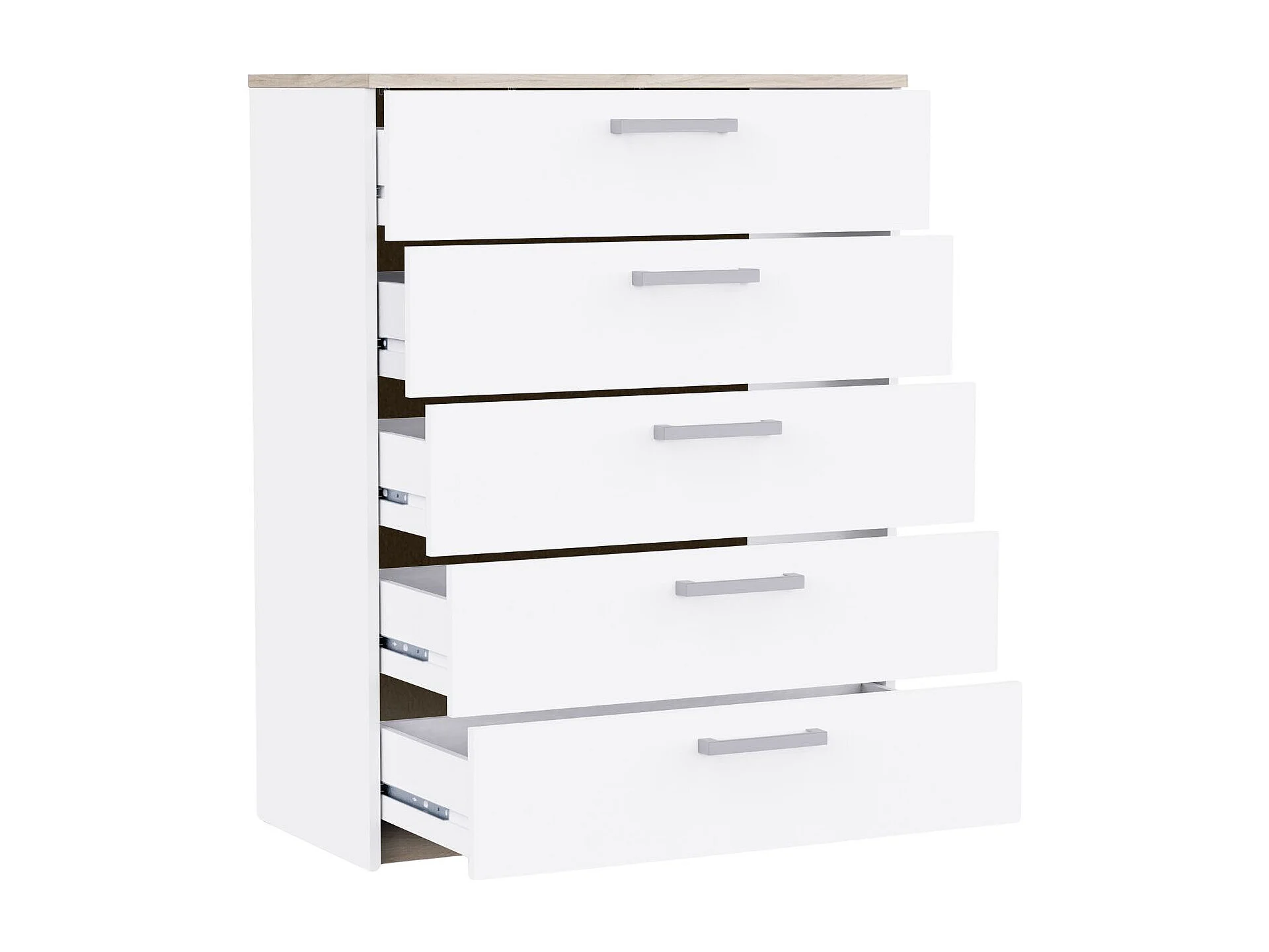 Commode Watson 5 tiroirs, blanc mat et chêne Kronberg, 79,6 x 102,5 x 41,1 cm