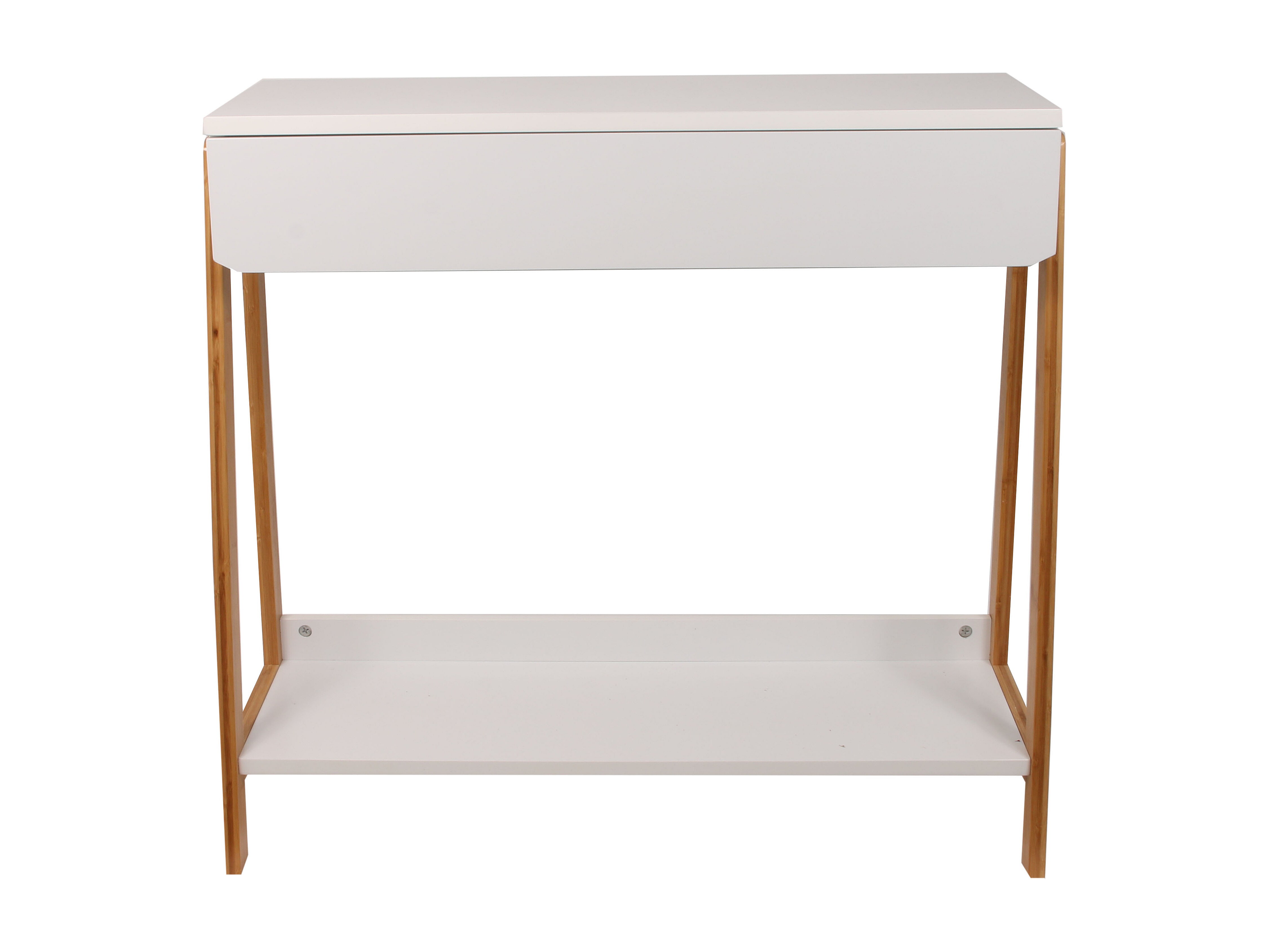Console Avec Tiroir Blanc Et Bois 83.8x34x77cm Blanc