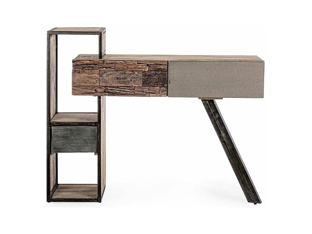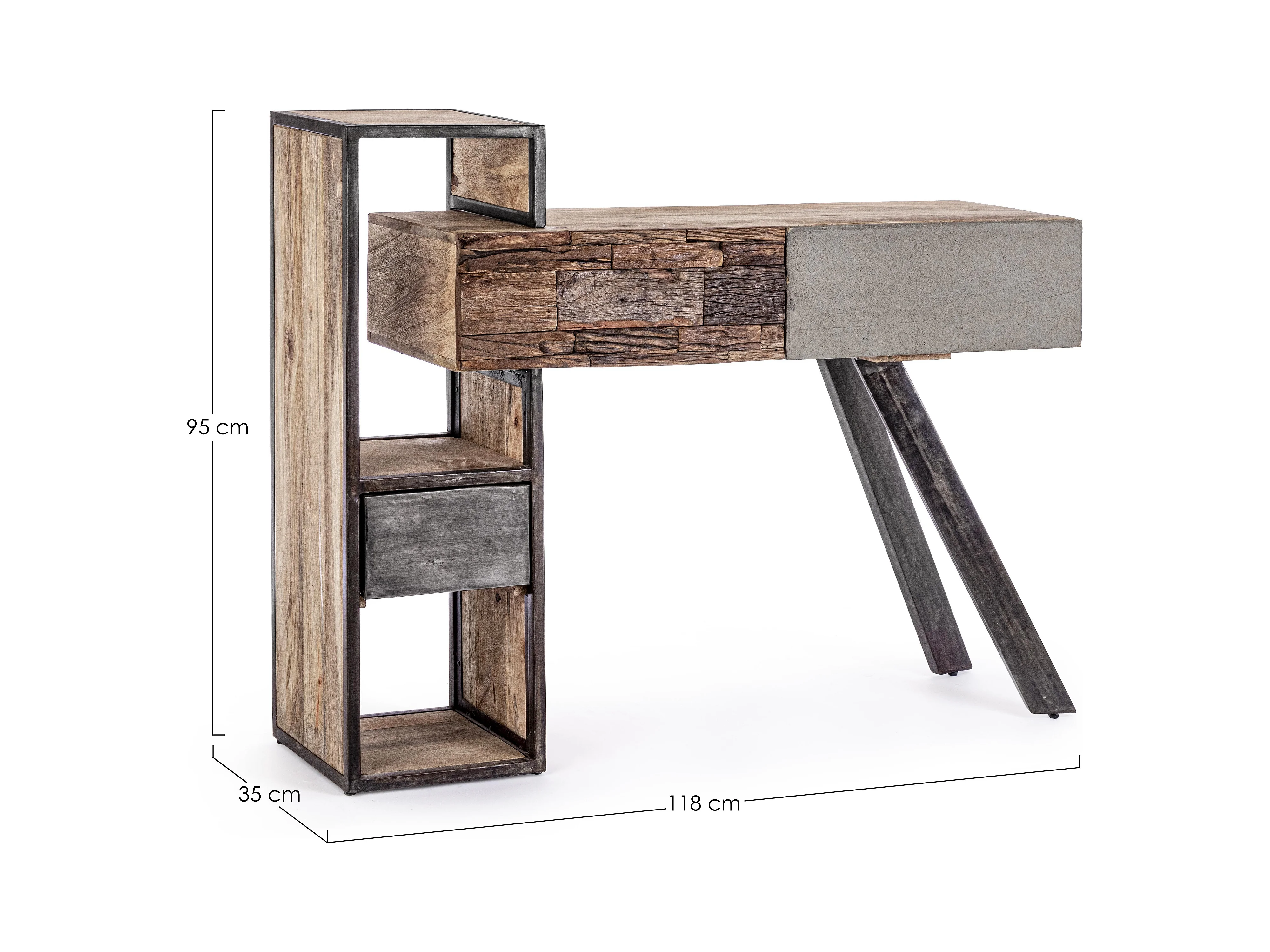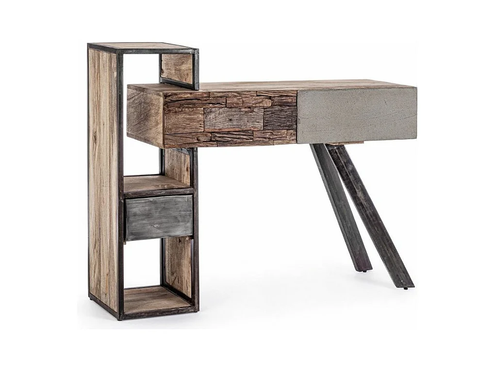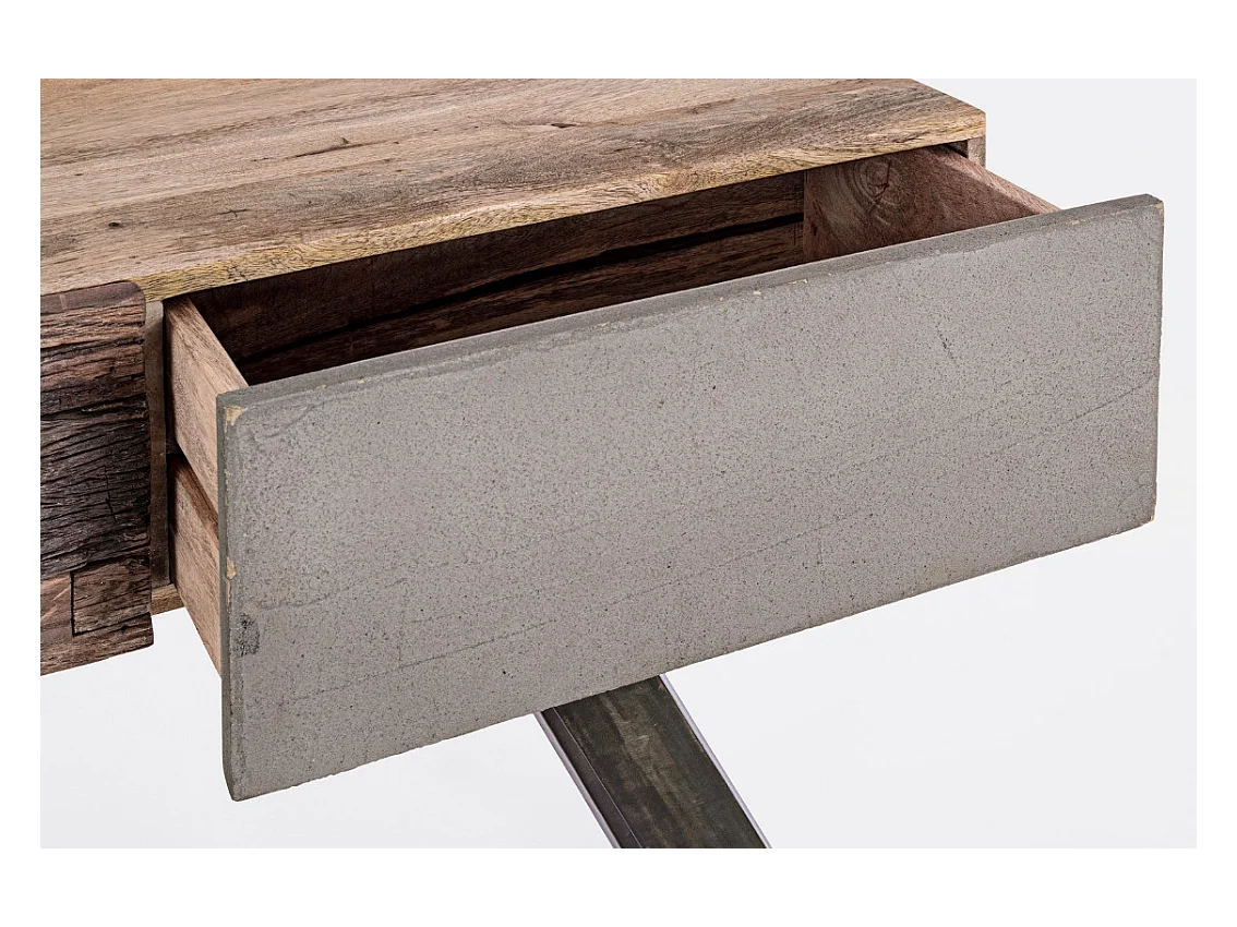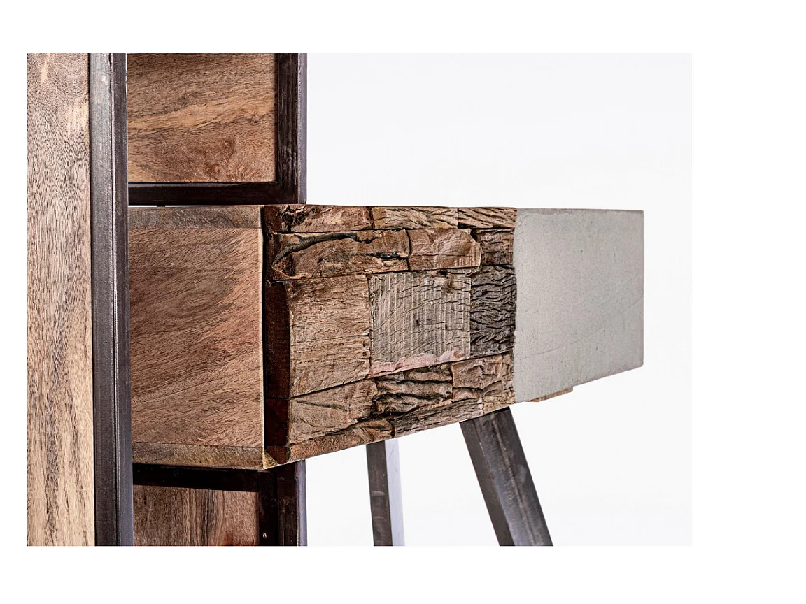 Console 2 tiroirs industrielle bois de manguier recyclé et acier noir Kramer 118cm