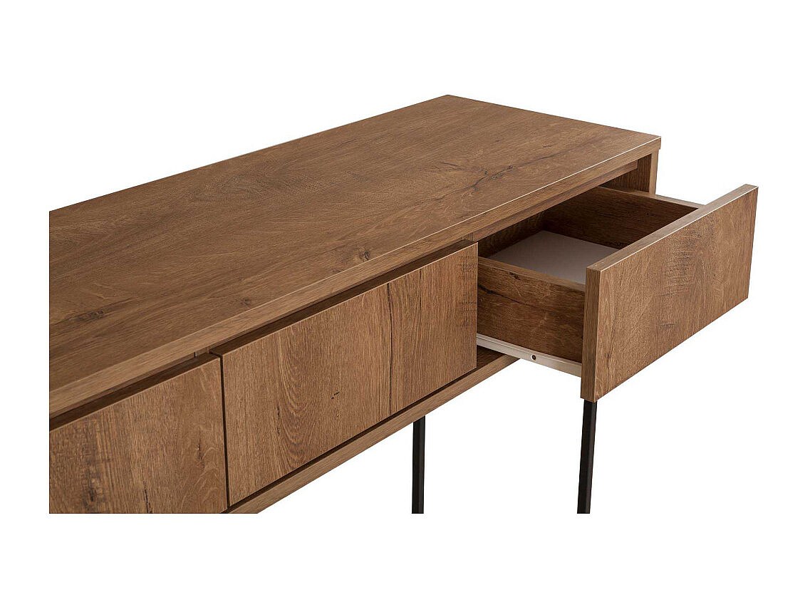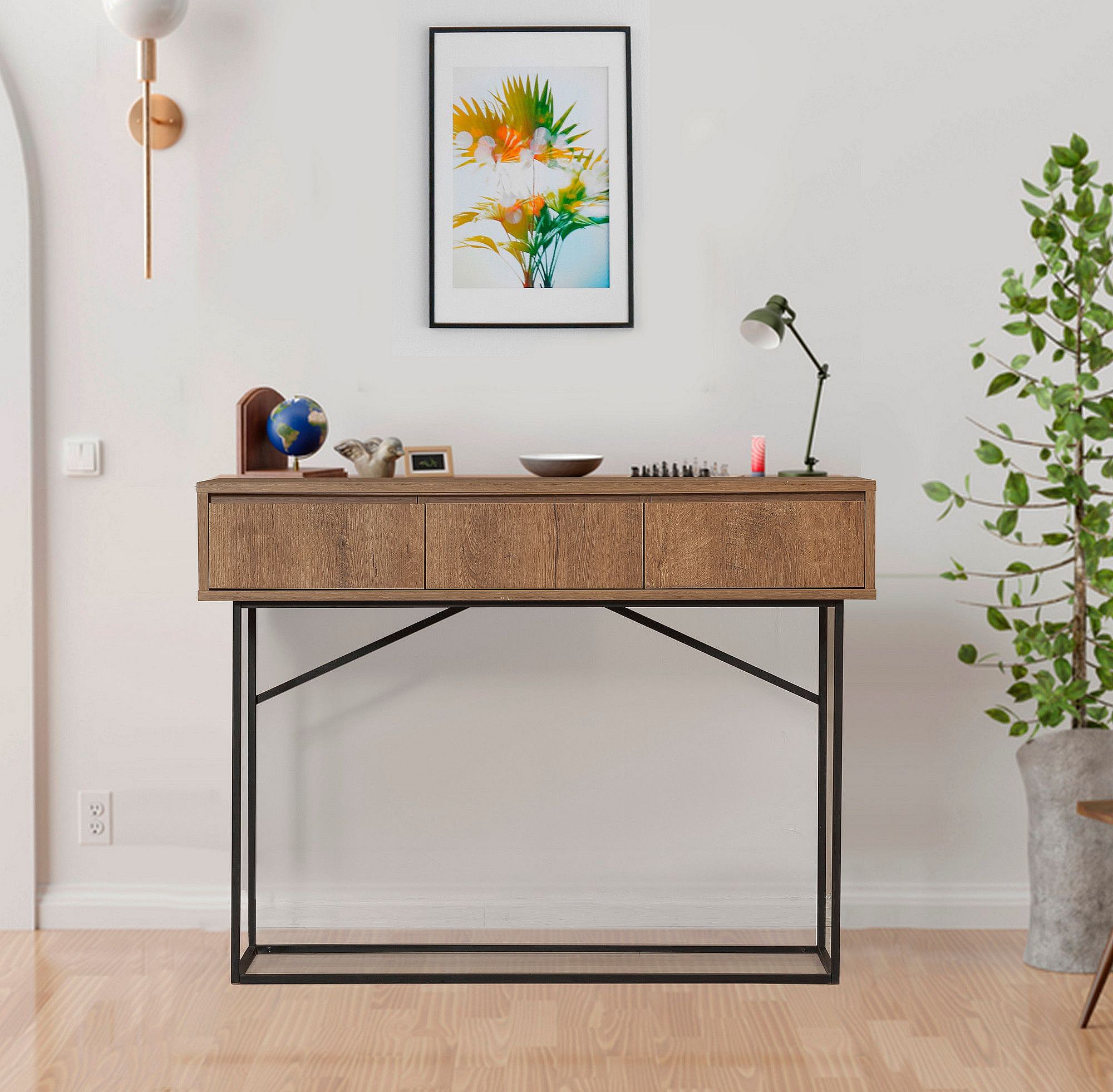 Console 3 tiroirs Stela style industriel Métal Noir et Bois Naturel