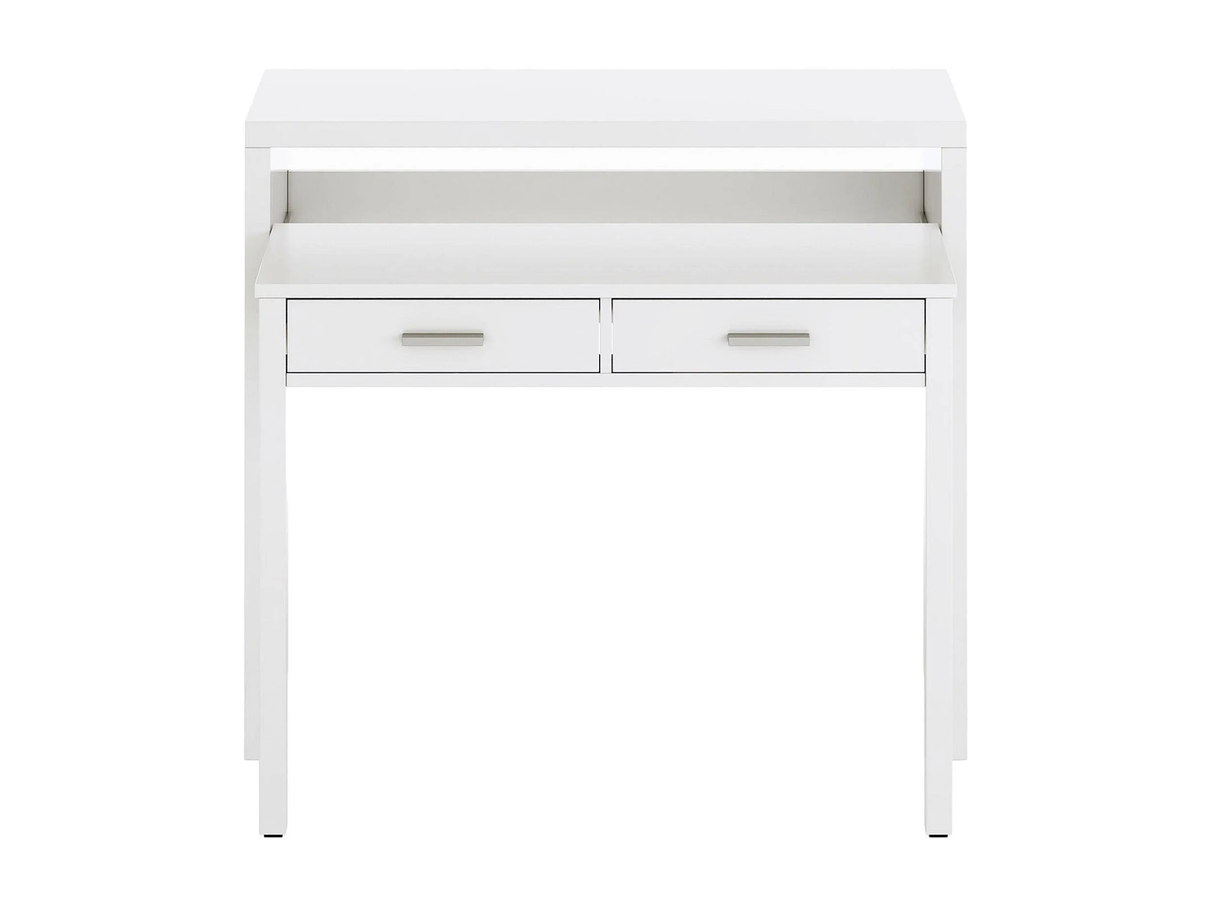 Bureau Billings, Bureau avec plateau extensible, Bureau PC avec 2 tiroirs, 99x36h88 cm, Blanc