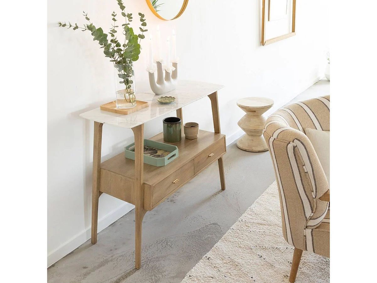 Console en bois de manguier et marbre Hari