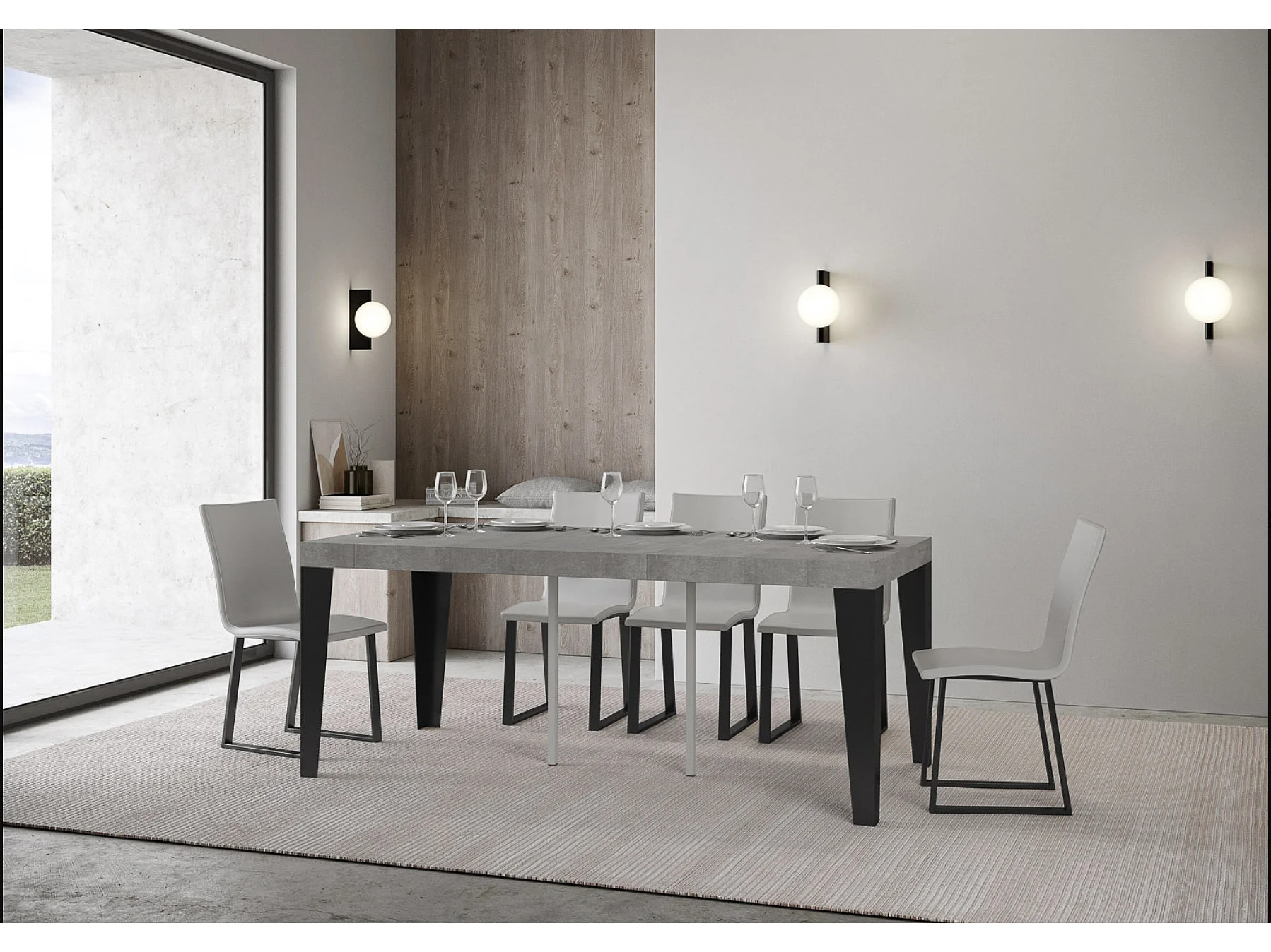 Console extensible design bois et acier mat Flavio-Couleur Gris ciment-2 pieds-5 rallonges épaisses