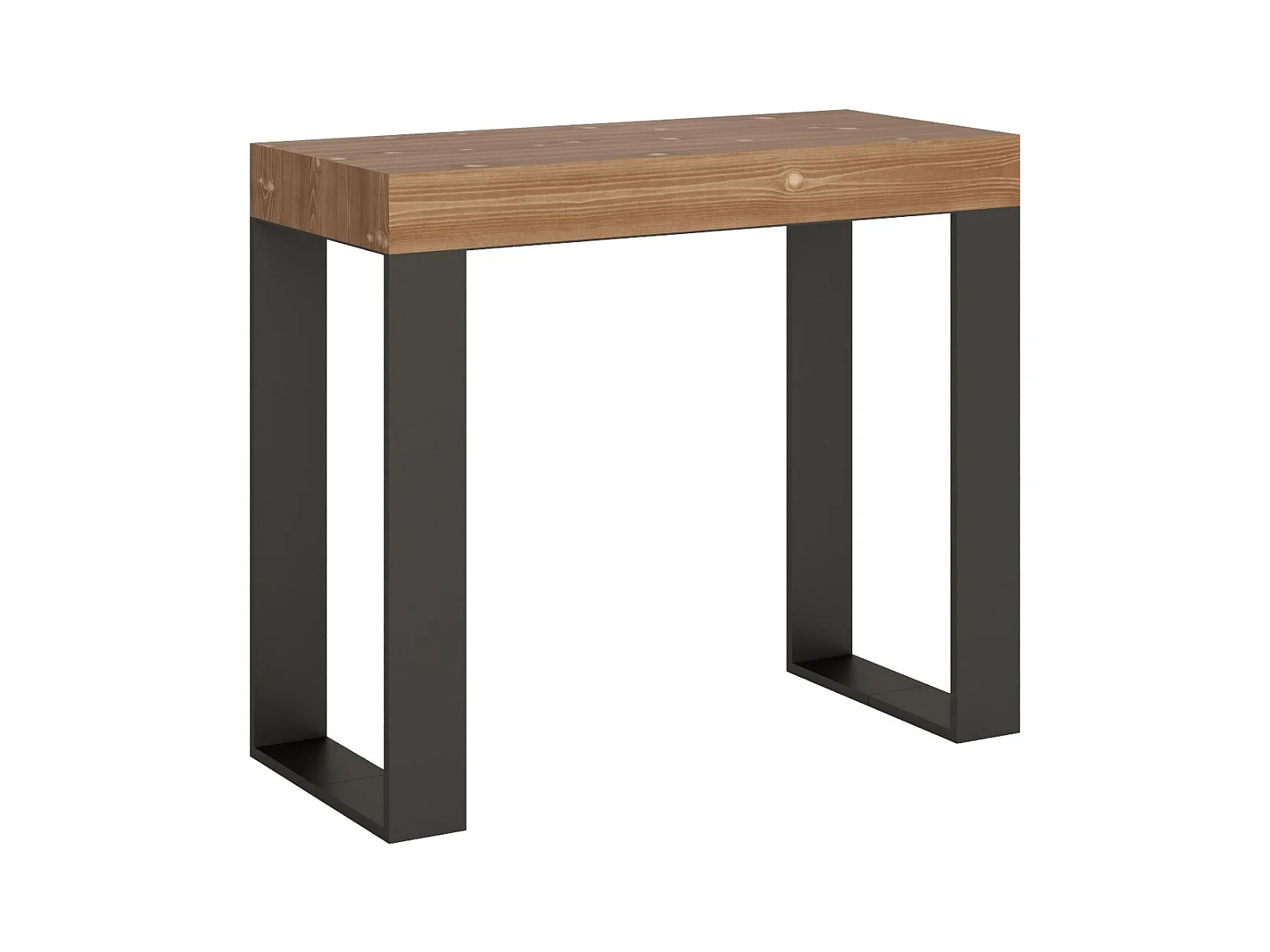 Console extensible pin massif teinté foncé et pieds métal anthracite 8 personnes 40 à 190cm Orina