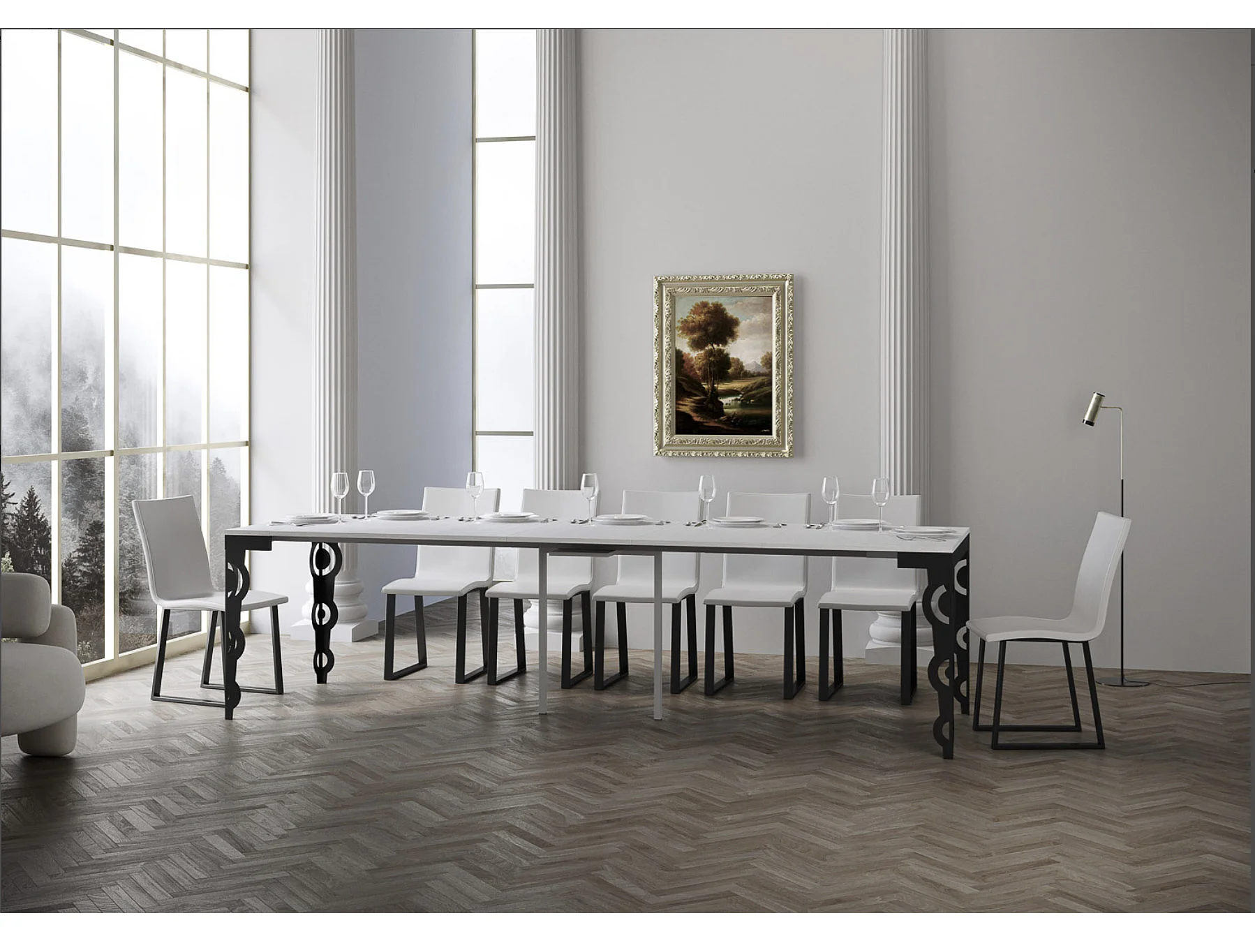 Console extensible style orientale Agadir 90x40-196 ou 90x40-300-Couleur Gris ciment-3 rallonges