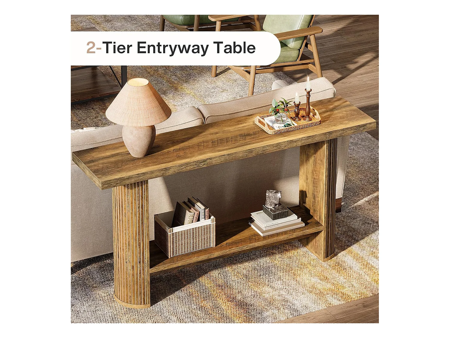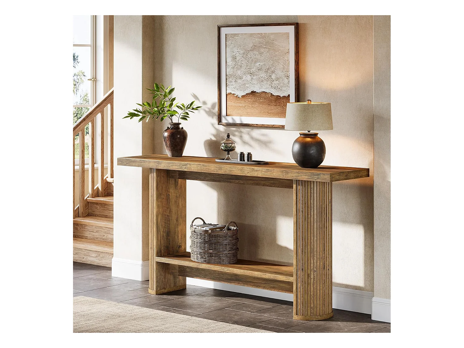 Petite table console de 105 cm pour entrée, table de canapé rustique à 3 niveaux
