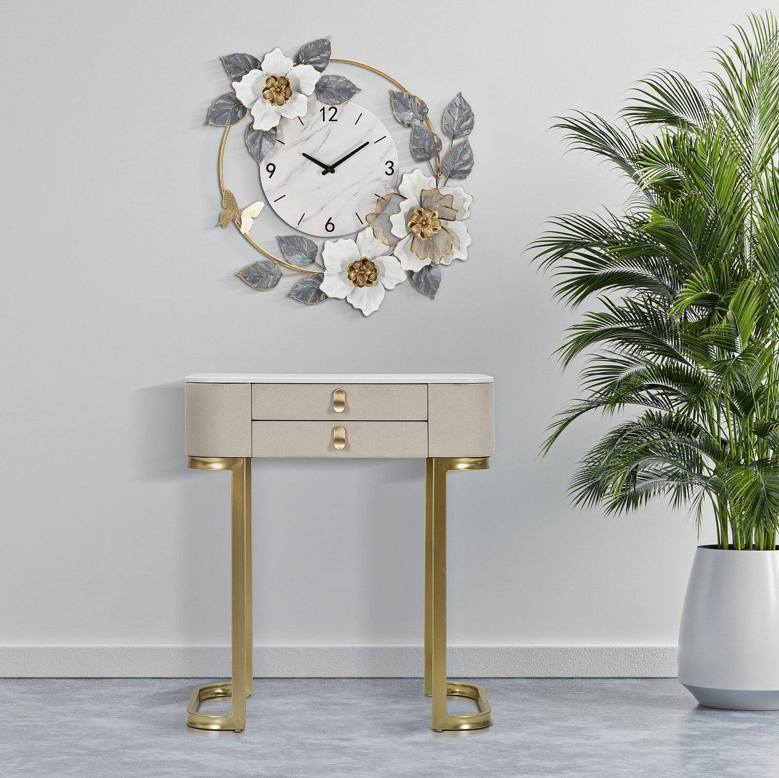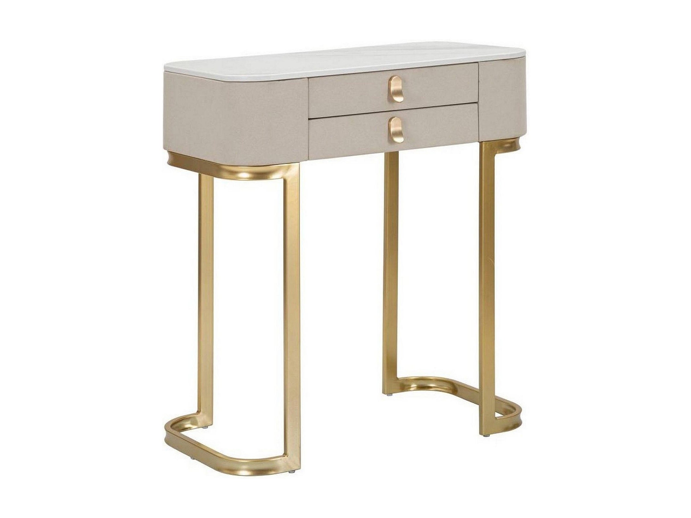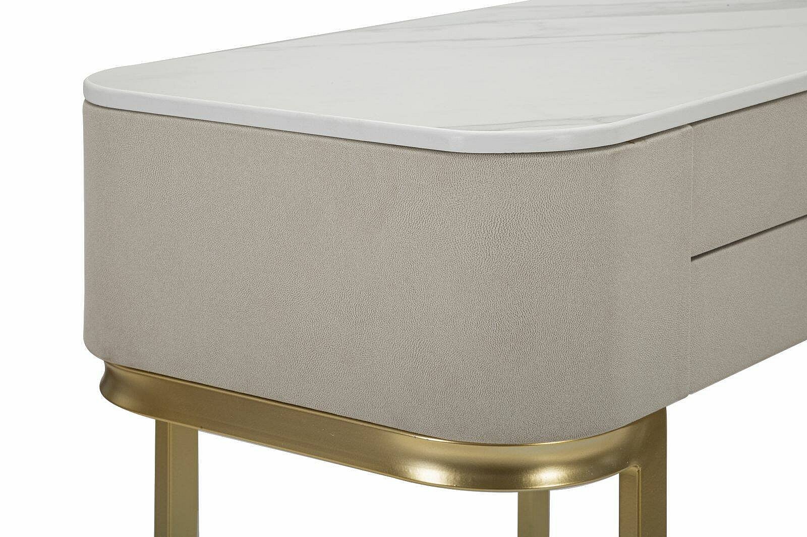 Console Ronda, Table polyvalente, Armoire de rangement, Bureau du couloir, Crème et Or, 70x40 h80 cm