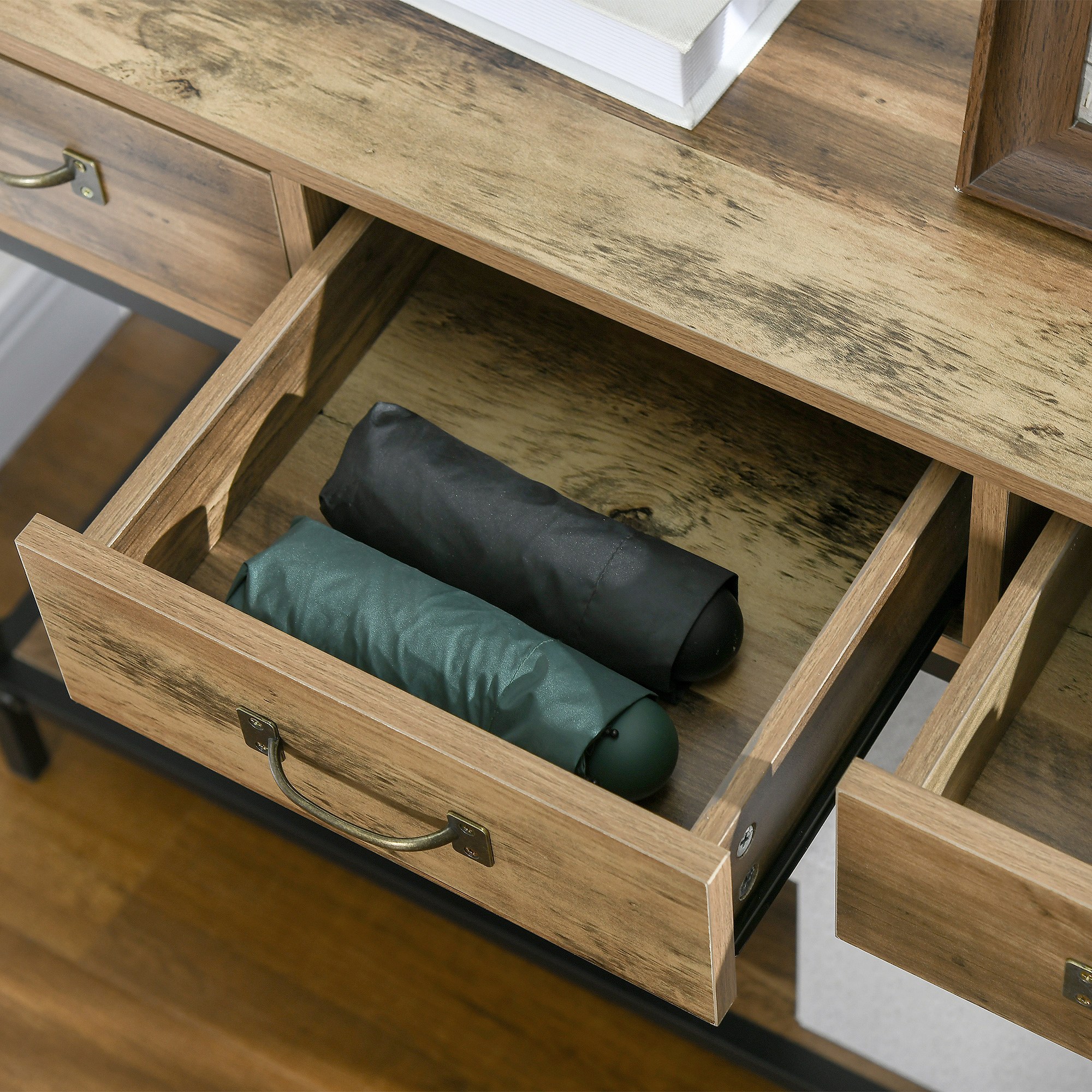 Table Console Table d'Entrée Industriel Multi-rangements 120 x 23,5 x 75 cm Bois Noyer