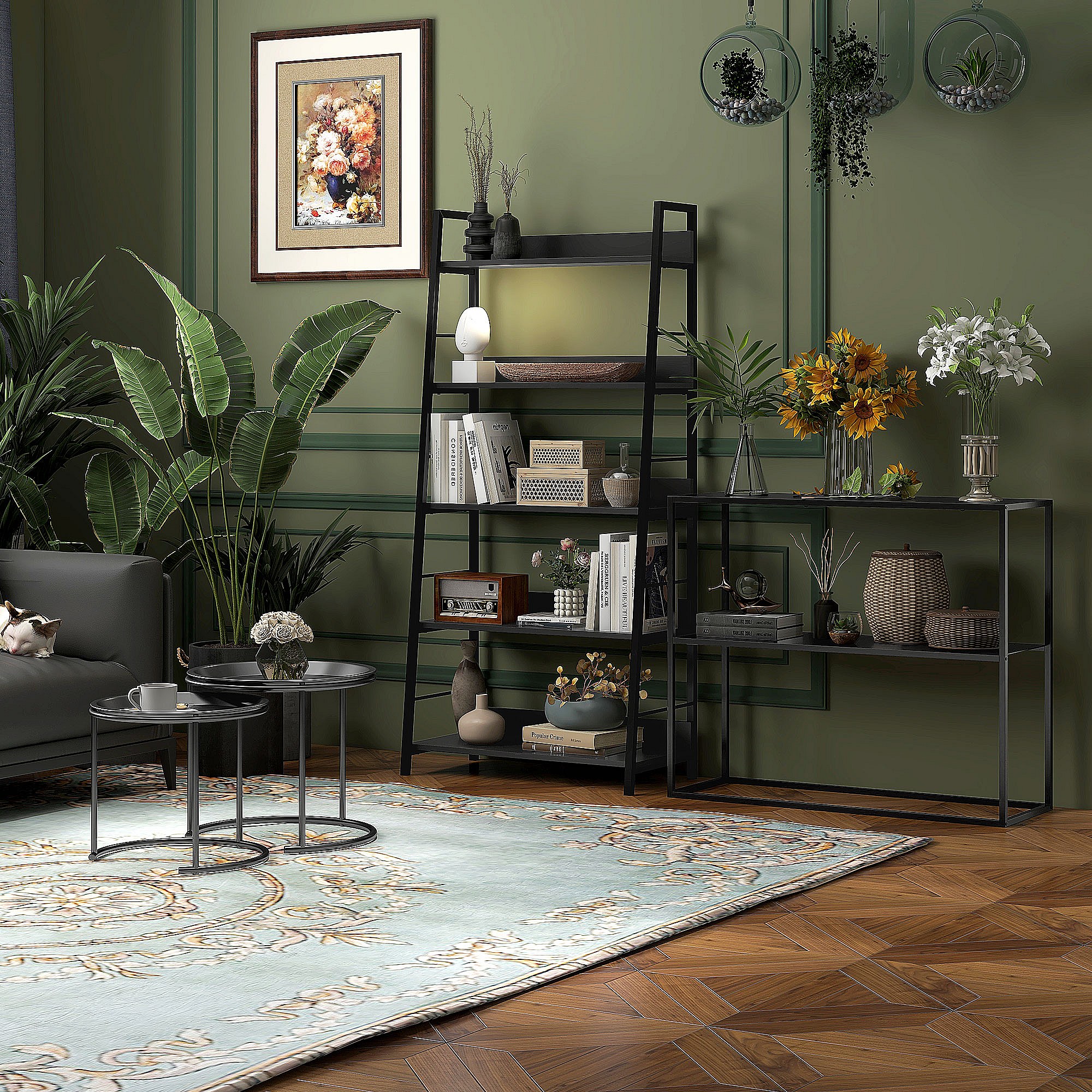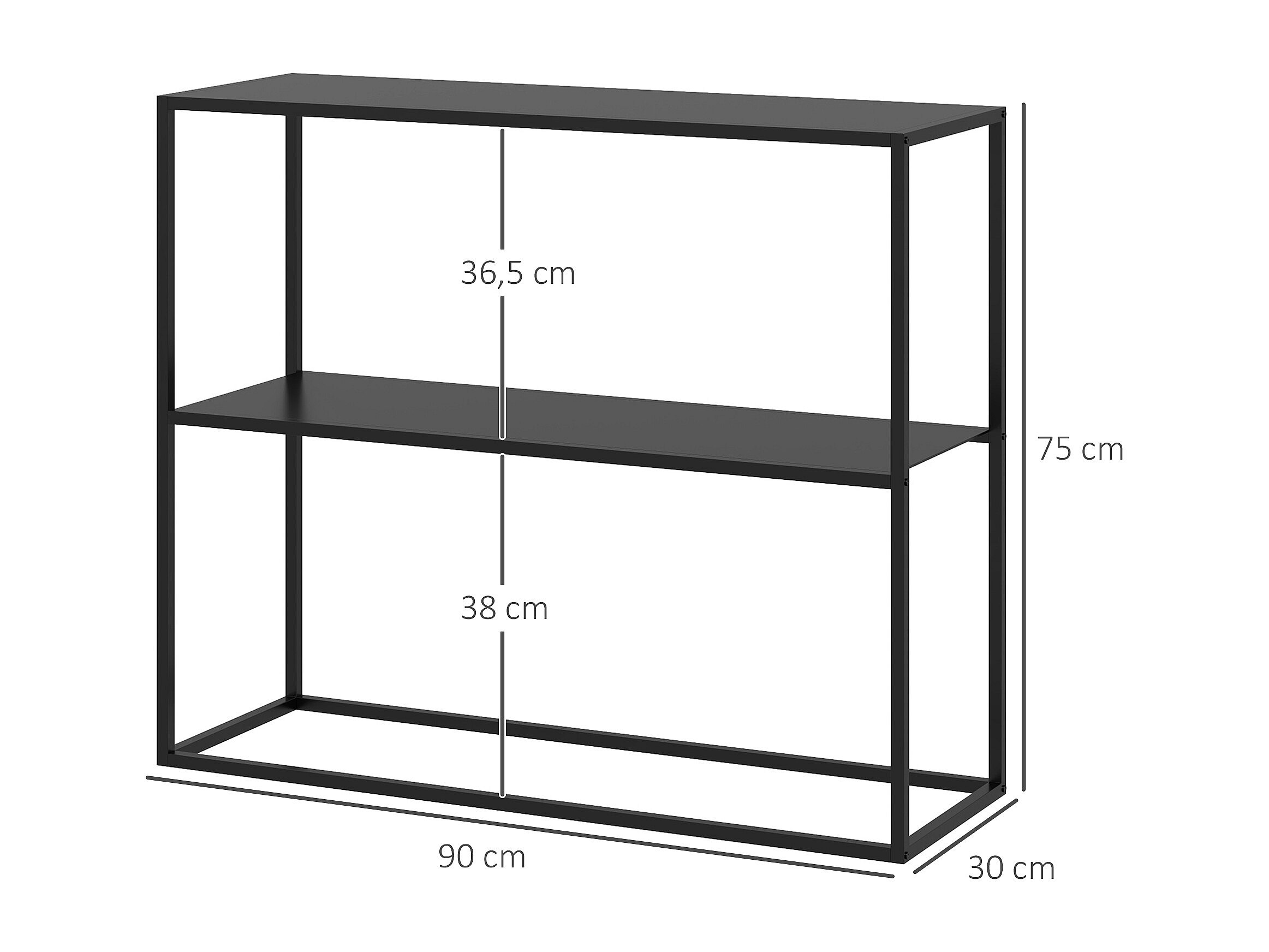 Console table d'appoint style contemporain avec étagère - dim. 90L x 30l x 75H cm - acier noir