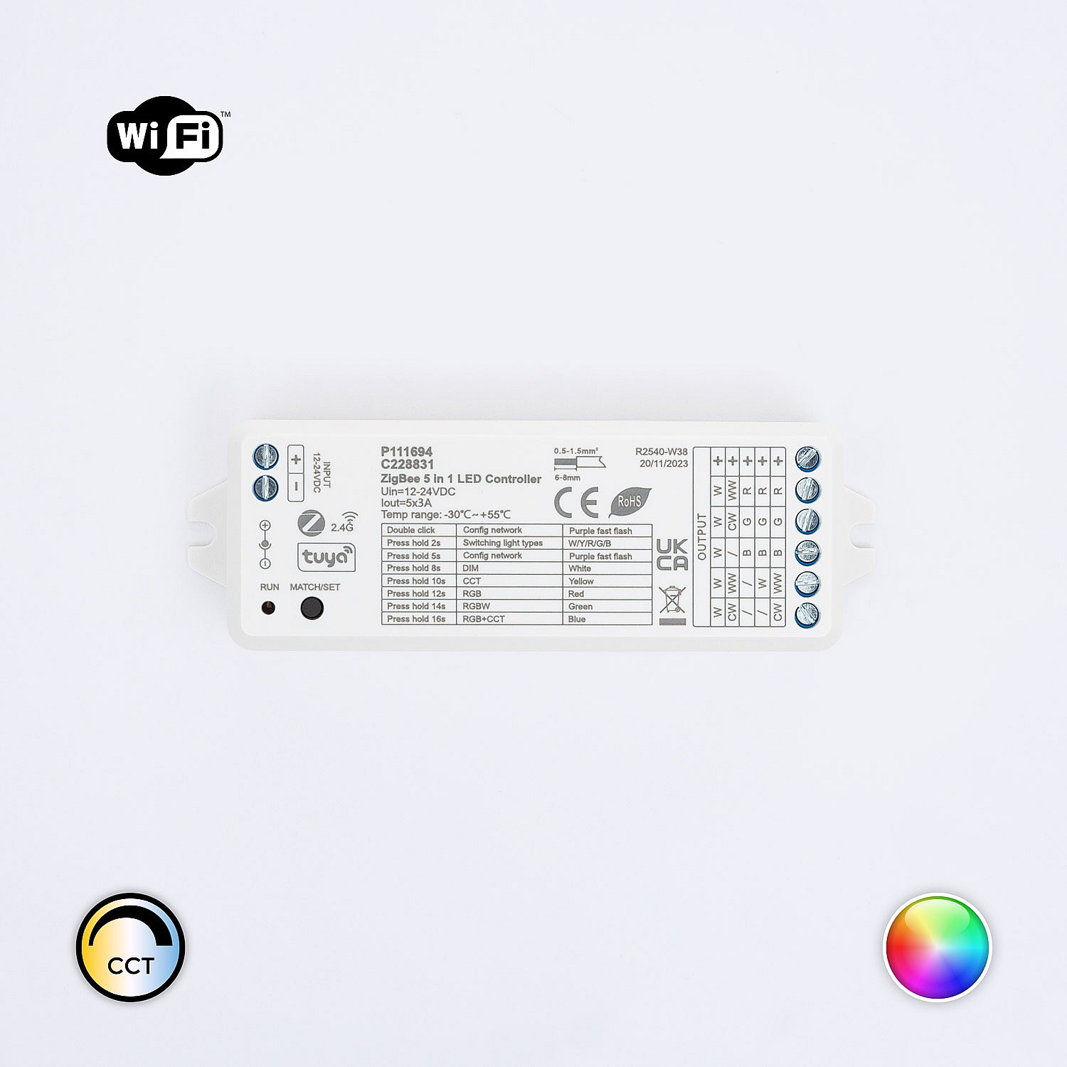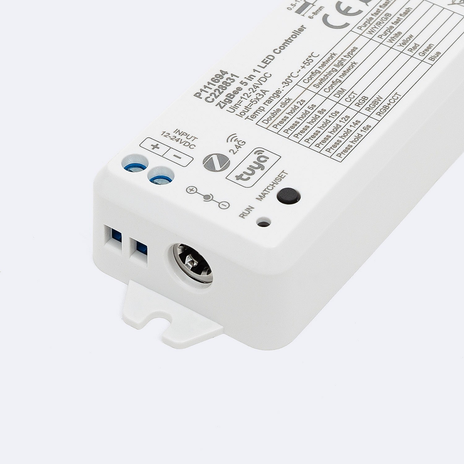 Contrôleur Variateur LED Tuya Zigbee 5 en 1 para ruban Monochrome/CCT/RGB/RGBW/RGBWW 12/24V DC Monocolor / CCT / RGB / RGBW / RGBWW
