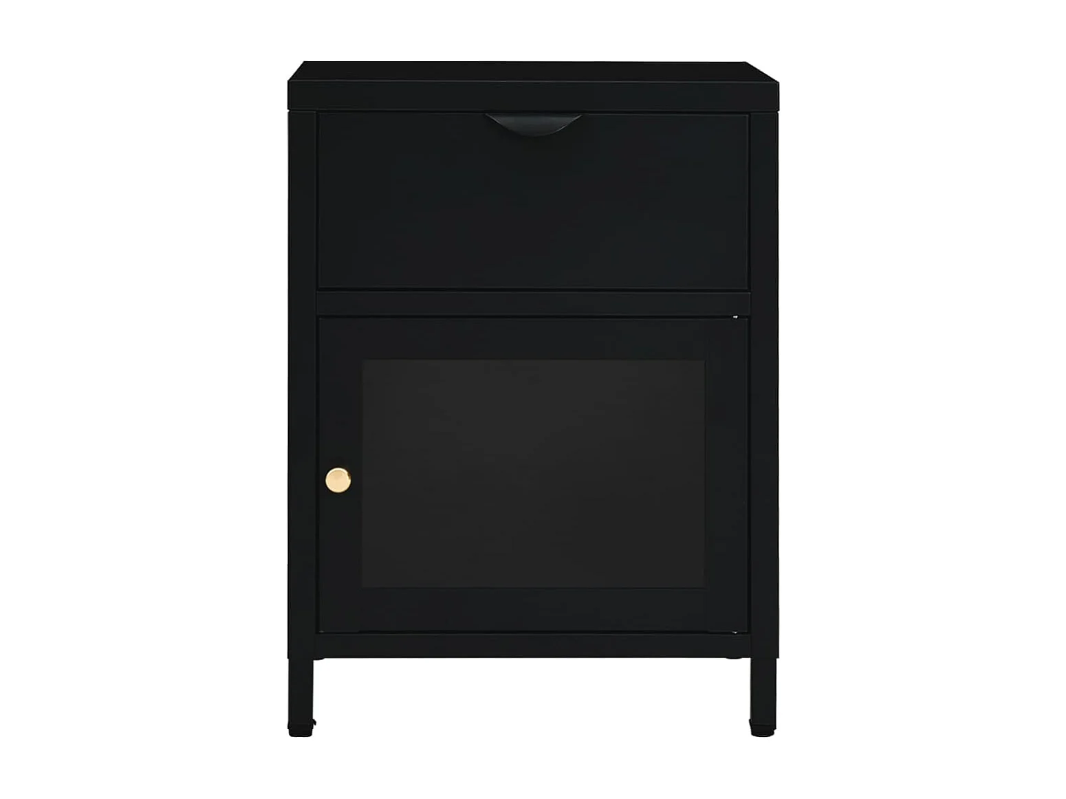 Coola Table de chevet Noir 40x30x54,5 cm Acier et verre