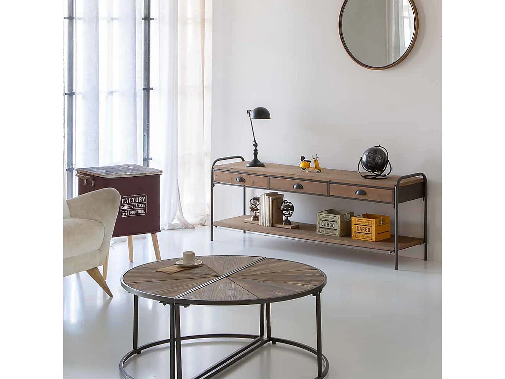 Présentoir + 3 corbeilles grillages en métal gris Corbeilles rondes