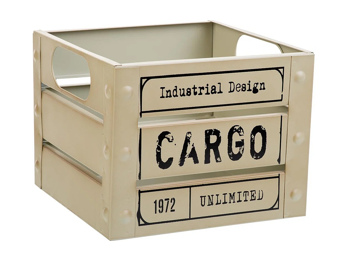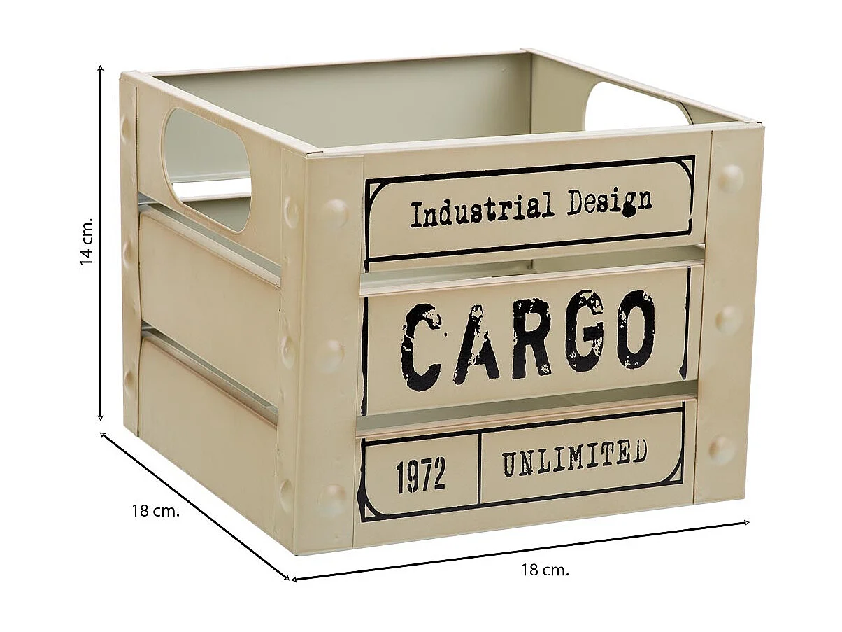 Corbeille rectangulaire en métal imprimé gris 31x18x16