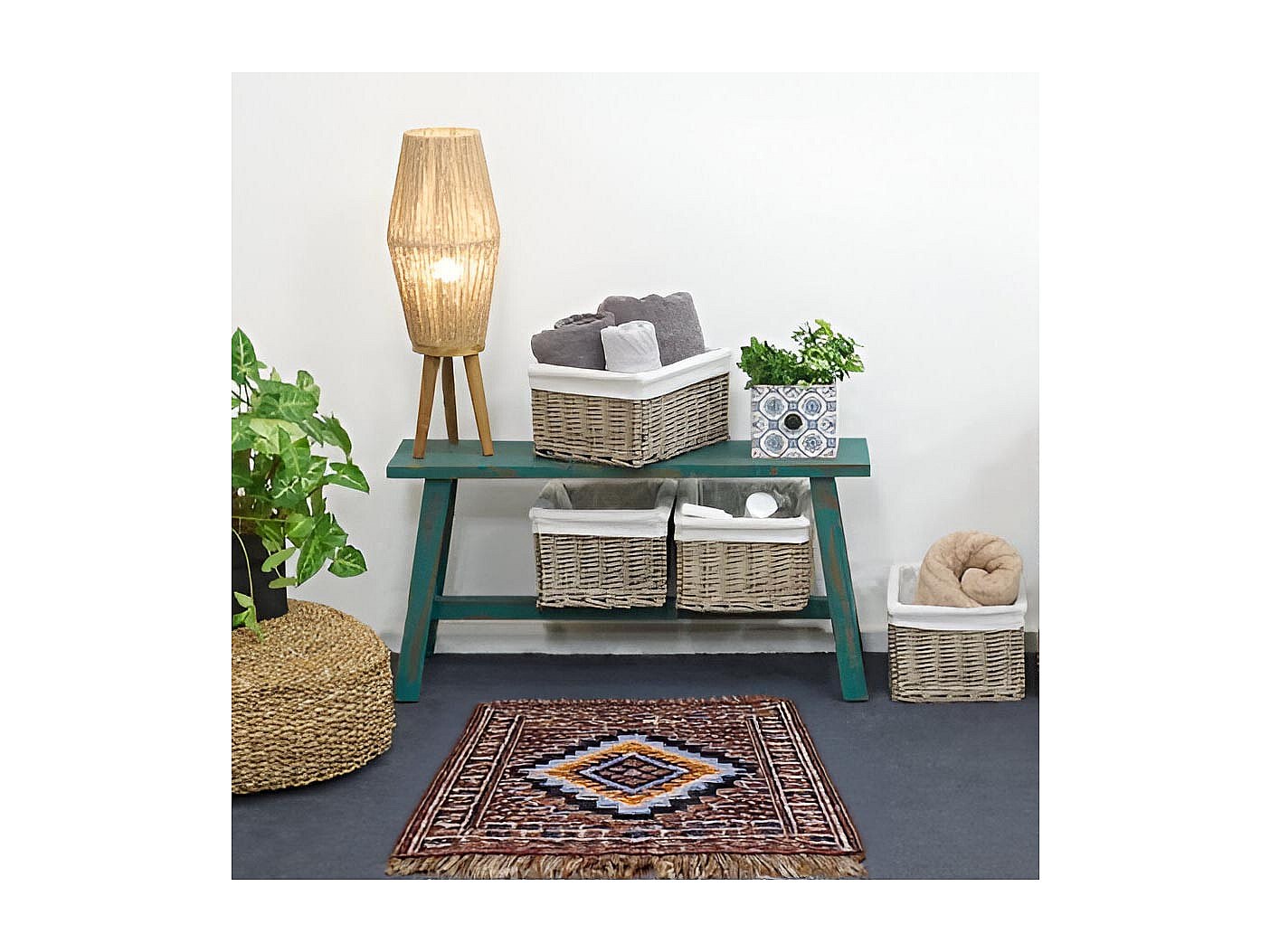 Corbeille de rangement en osier gris et coton 34 x 26 x 18 cm