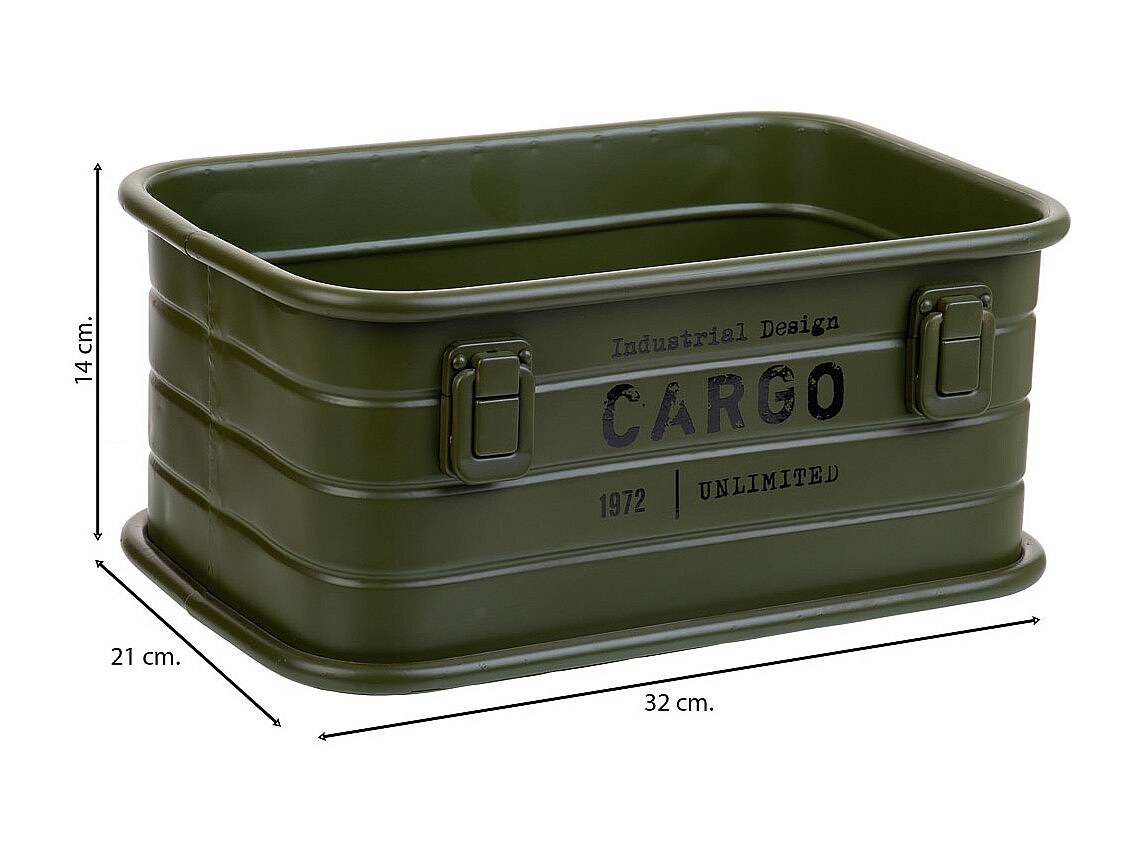 Corbeille rectangulaire en métal imprimé vert 32x21x14