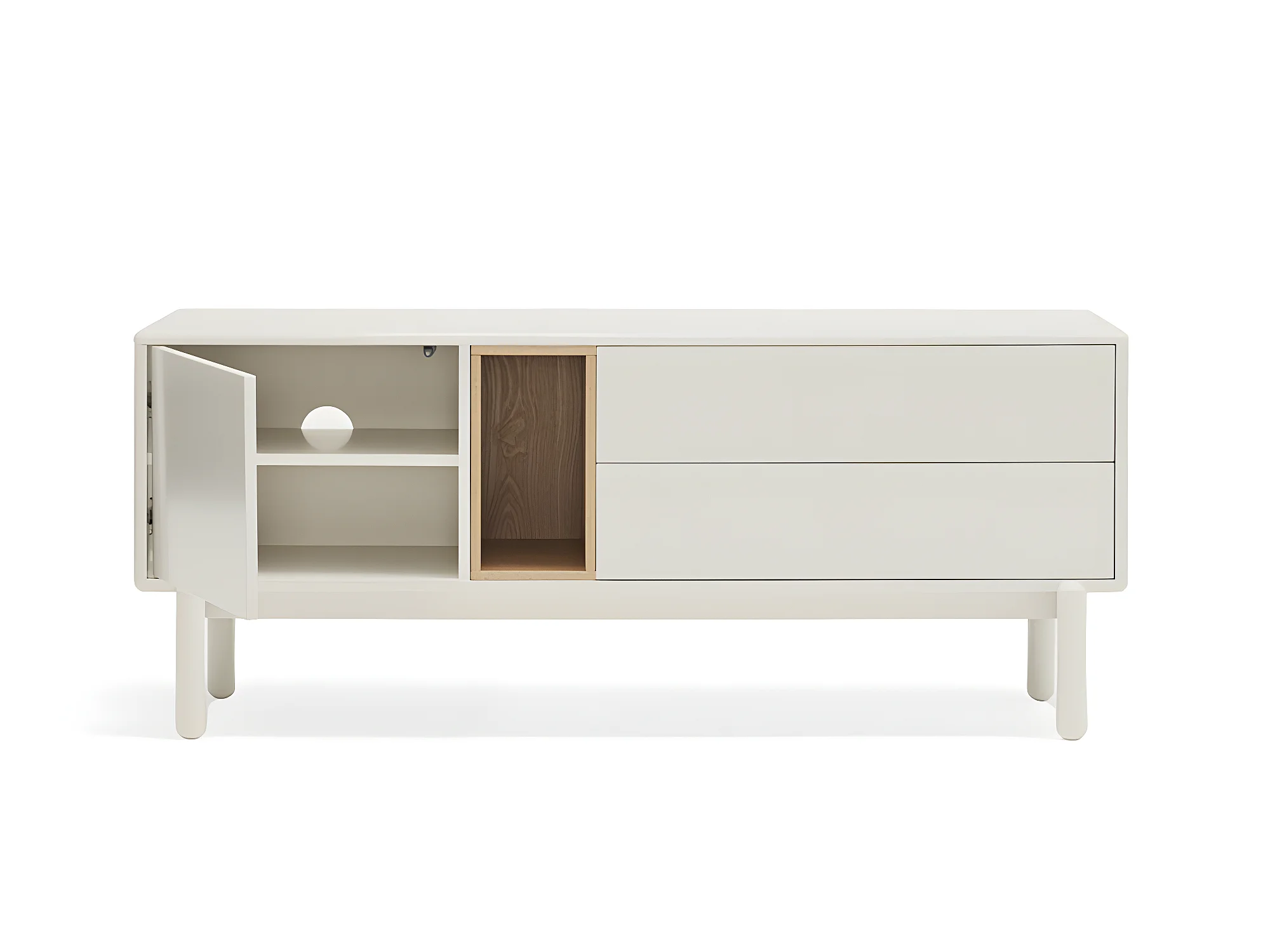Corvo - Meuble tv 1 porte 1 niche et tiroir en bois L140cm - Gris clair