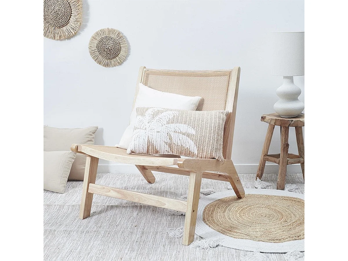 Coussin 30x50cm en polyester motif palmier coloris marron et blanc
