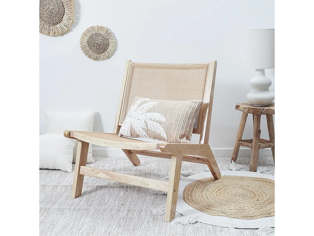 Coussin 40x40cm en polyester motif palmier coloris marron et blanc