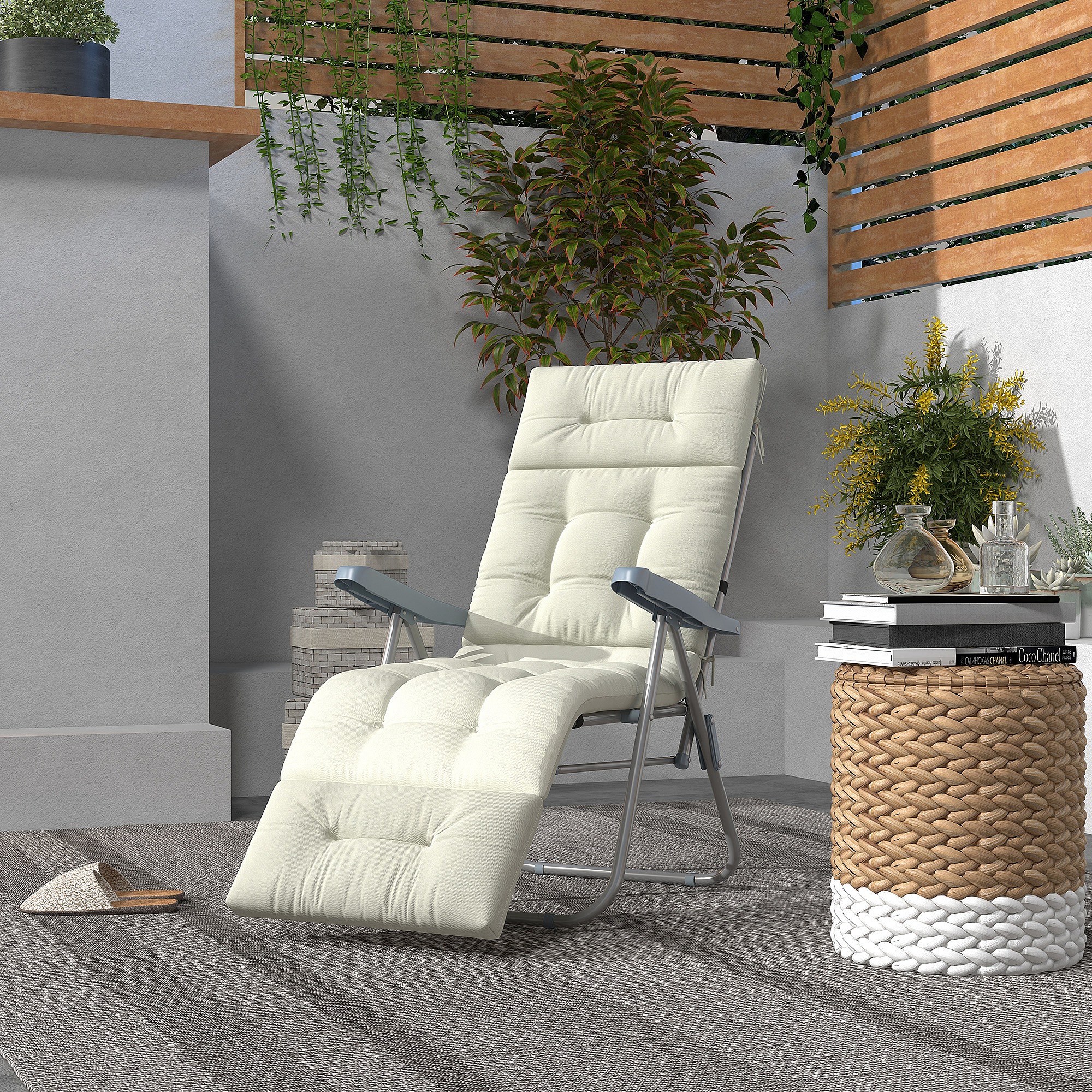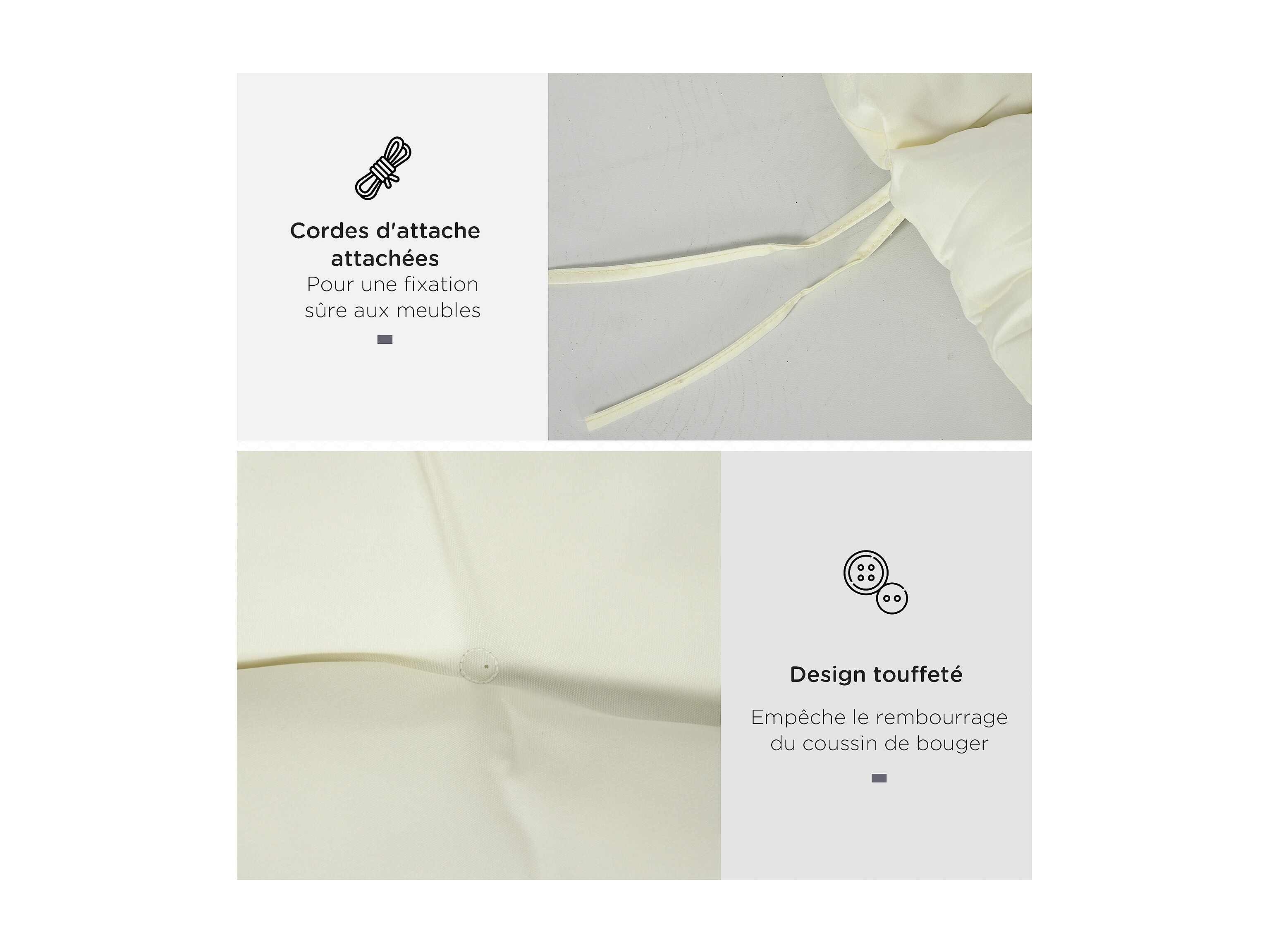 Coussin bain de soleil - coussin matelassé chaise longue - dim. 200L x 60l cm - ép. 13 cm - attaches - polyester crème