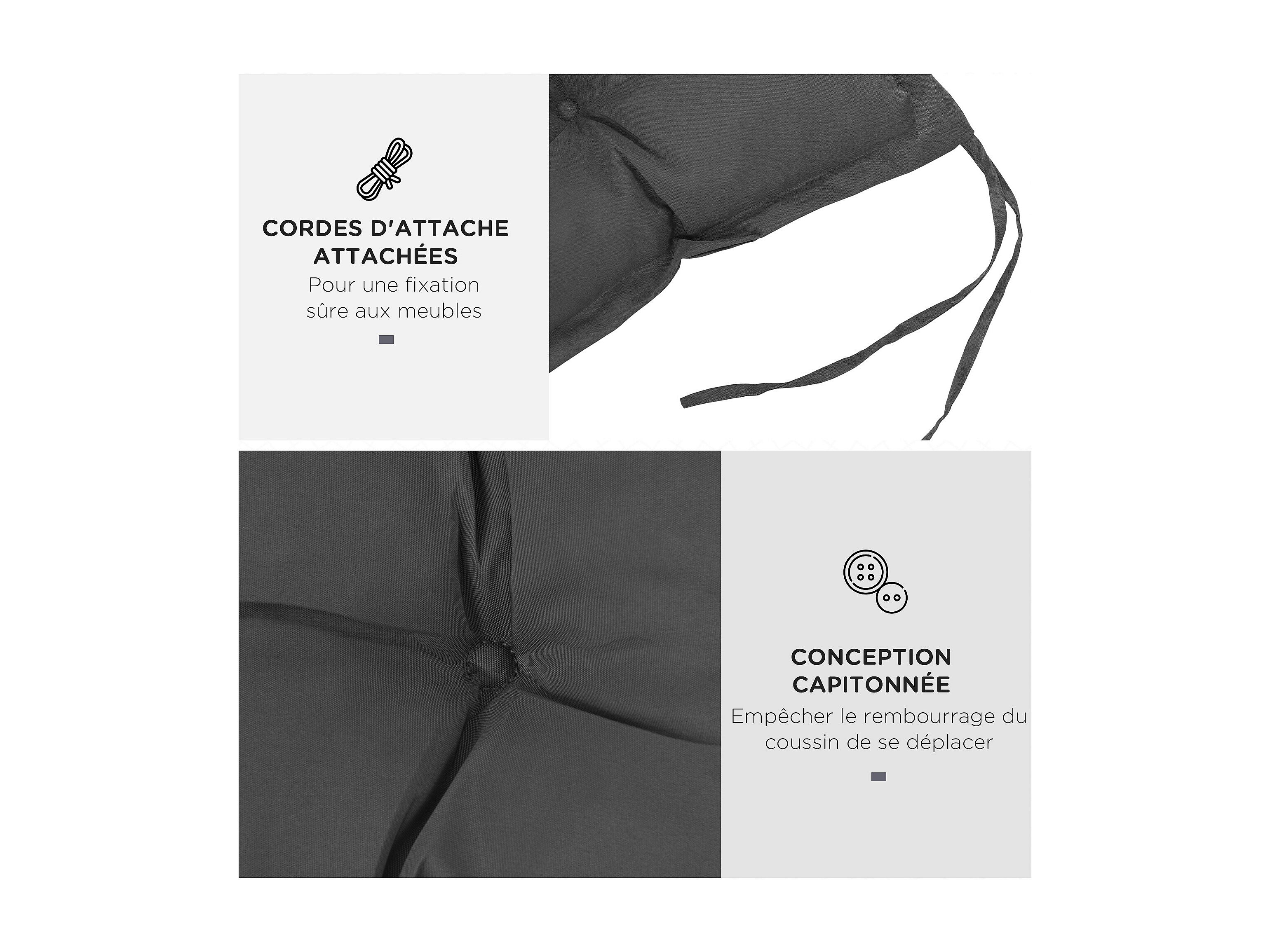 Coussin d'assise pour banc de jardin rembourrage épais 100 x 40 x 10 cm polyester gris