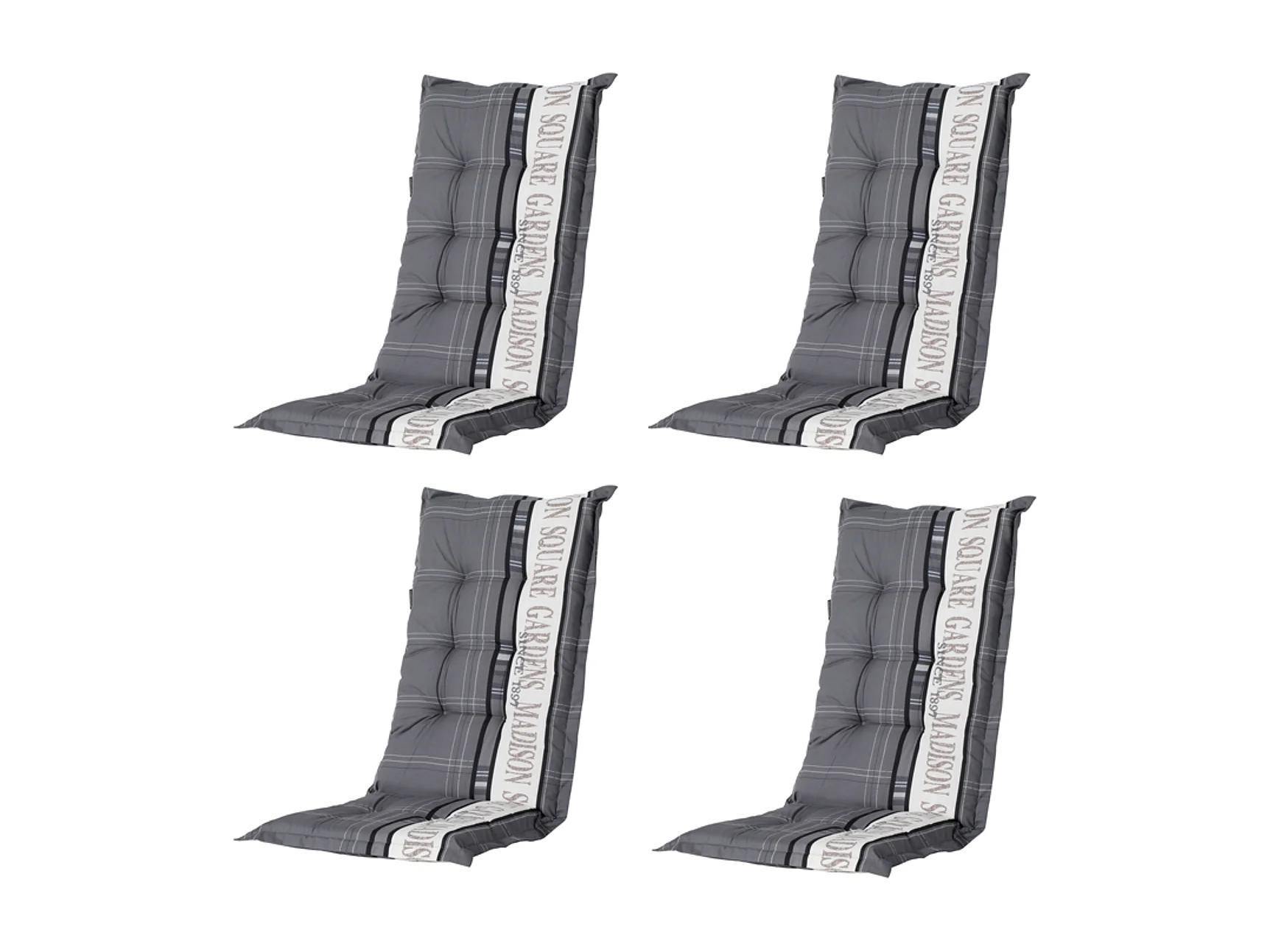 Coussin de chaise de jardin dossier haut Naples gris - Environ 120 x 50 cm - Lot de 4