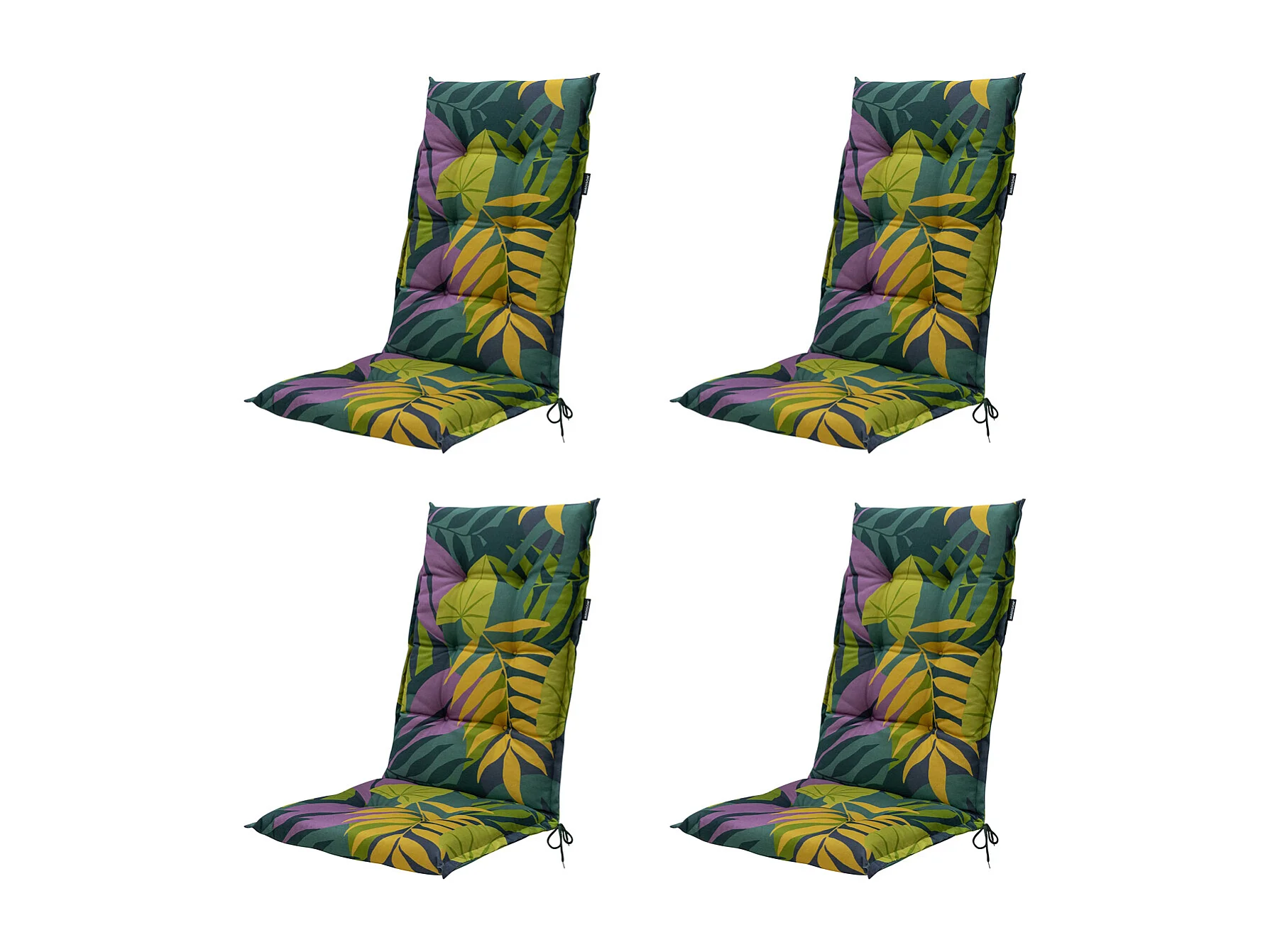 Coussin de chaise de jardin haut dossier Iven vert - Environ 123 x 50 cm - Lot de 4