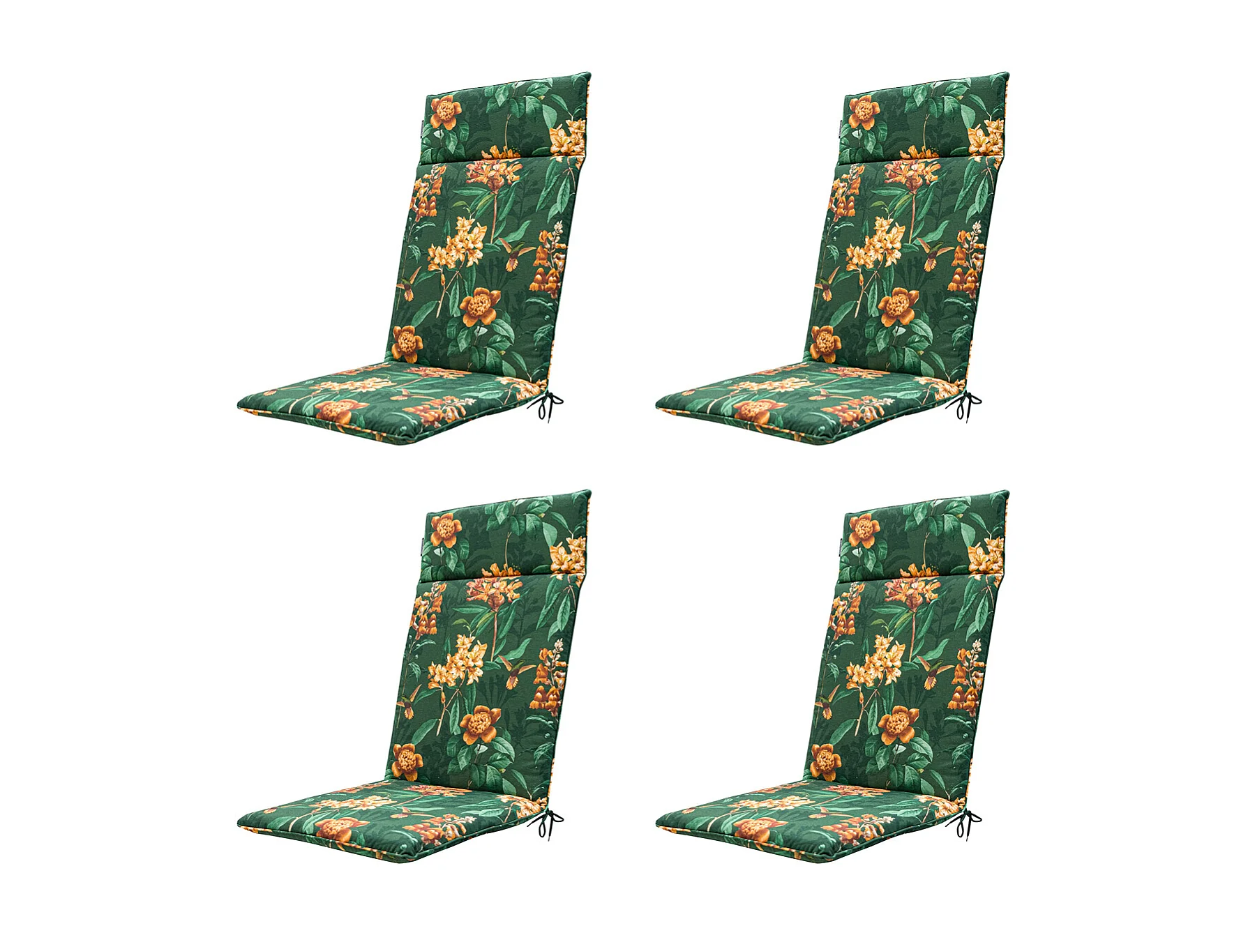 Coussin de chaise de jardin haut dossier Lua vert - Environ 120 x 50 cm - Lot de 4