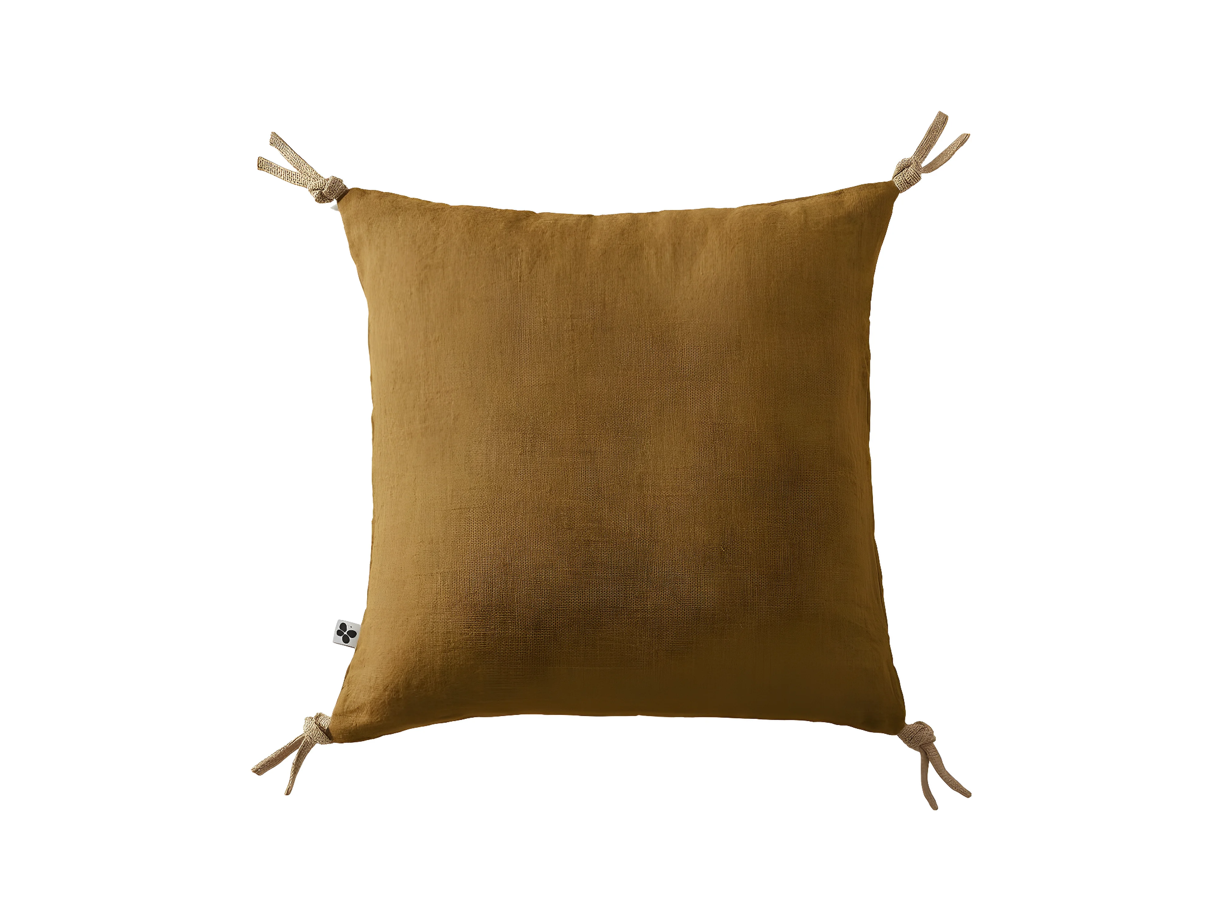 Coussin 45 x 45 cm en lin lavé sable avec 4 nouettes en jute - LUISA