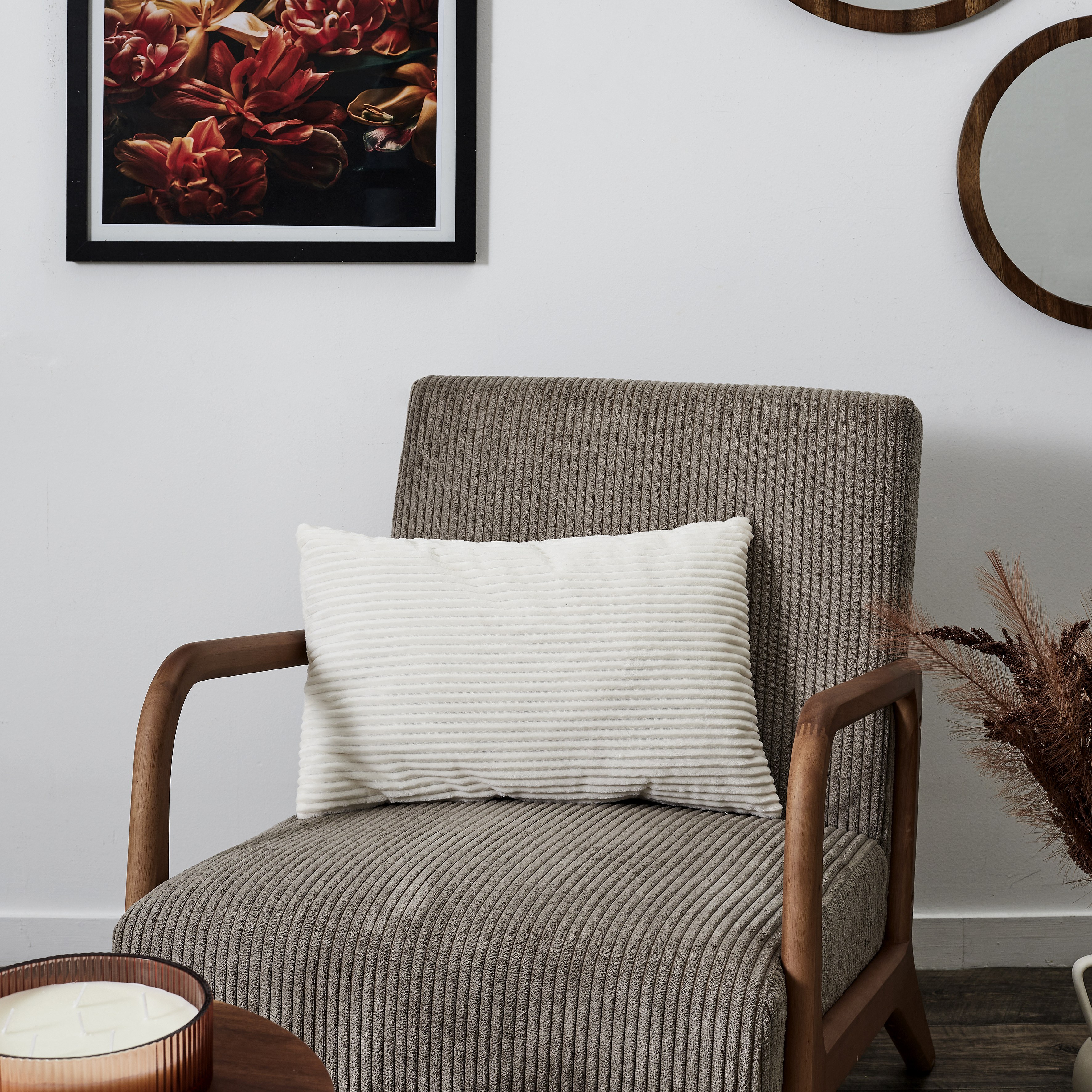 Coussin Flanelle Cotelet 30x50cm Gris, Rouge, Blanc
