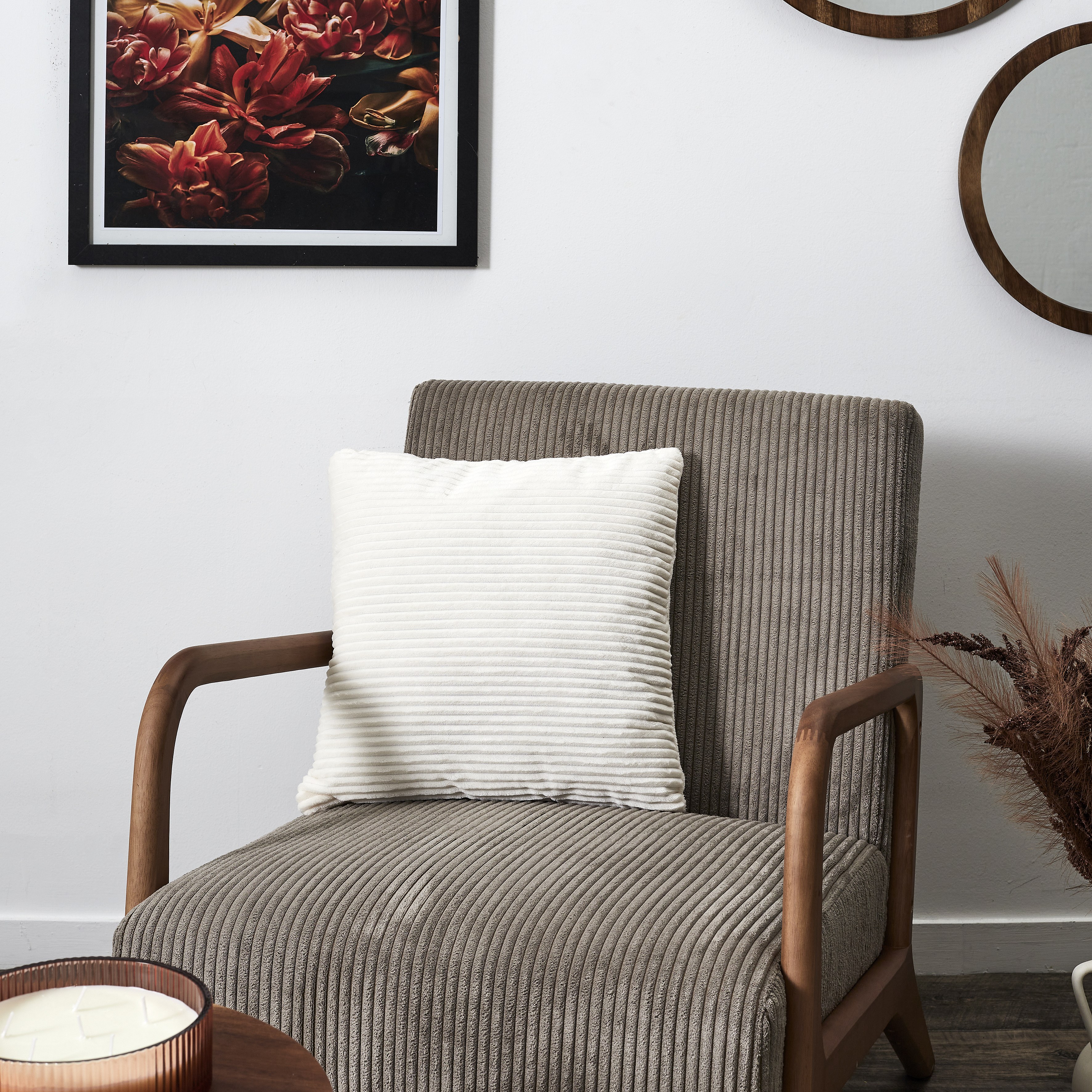 Coussin Grosse Cotes Flanelle 40x40cm Blanc, Gris, Rouge