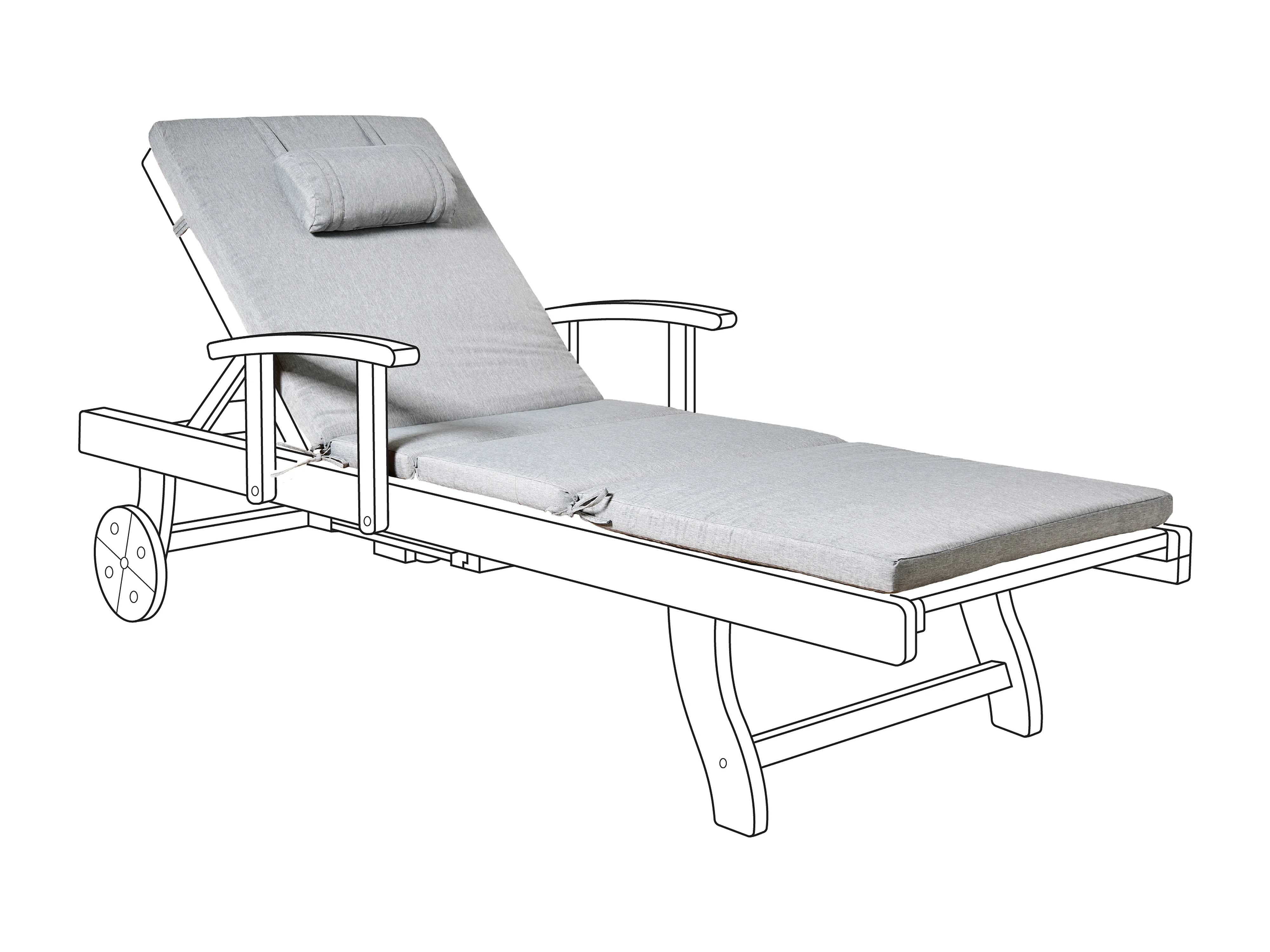 Coussin de chaise longue Alice gris - Env. 200x65 cm