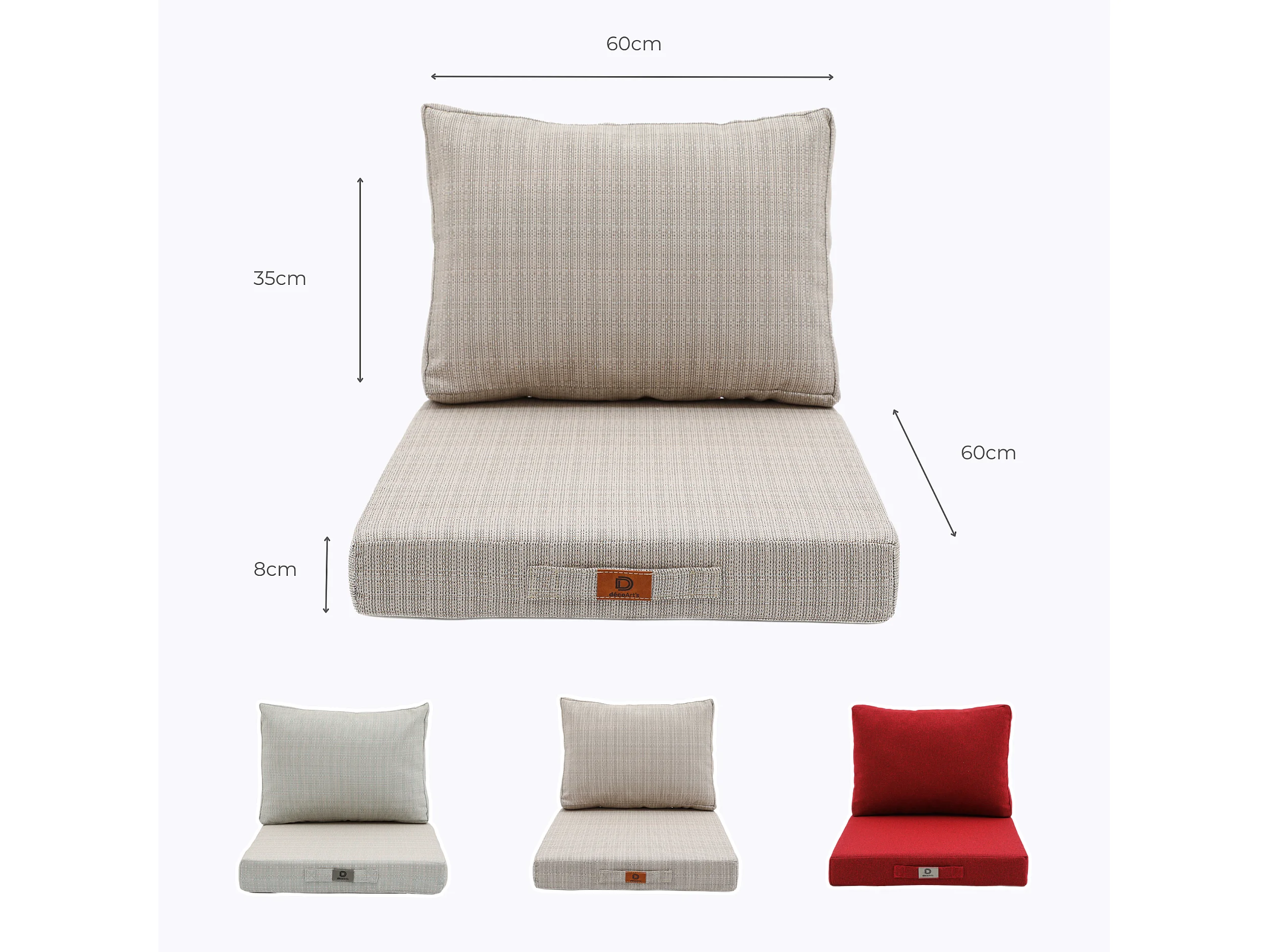 Coussins pour salon de jardin déhoussable 60x60cm Beige