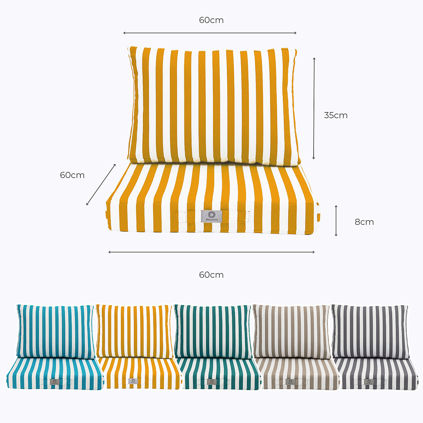 Coussins pour salon de jardin déhoussable 60x60cm - Rayure Jaune