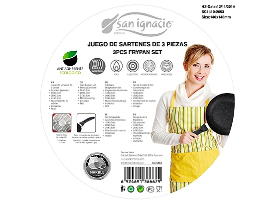 Pack de 3 casseroles san ignacio ø16cm ø20cm ø24cm + ustensile multi-usages avec 4 moules interchangeables