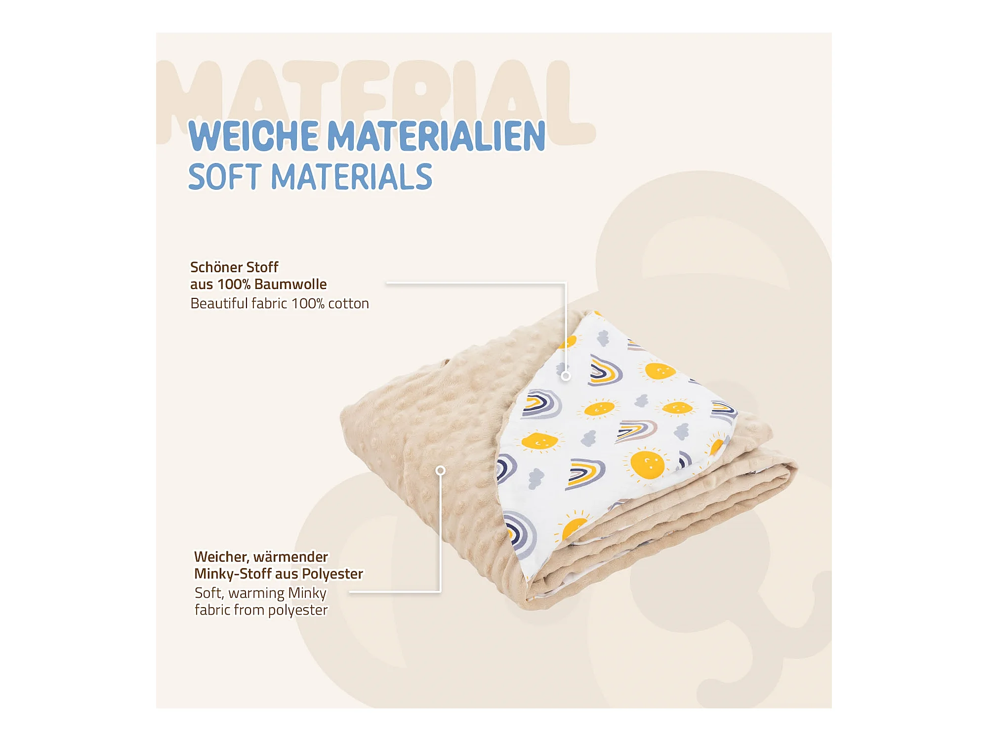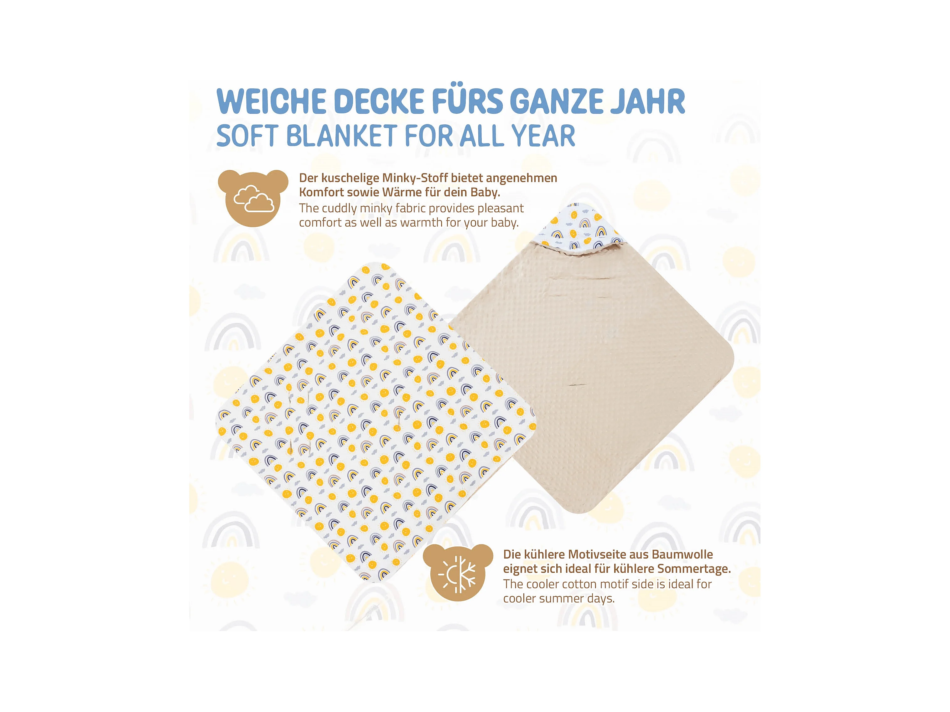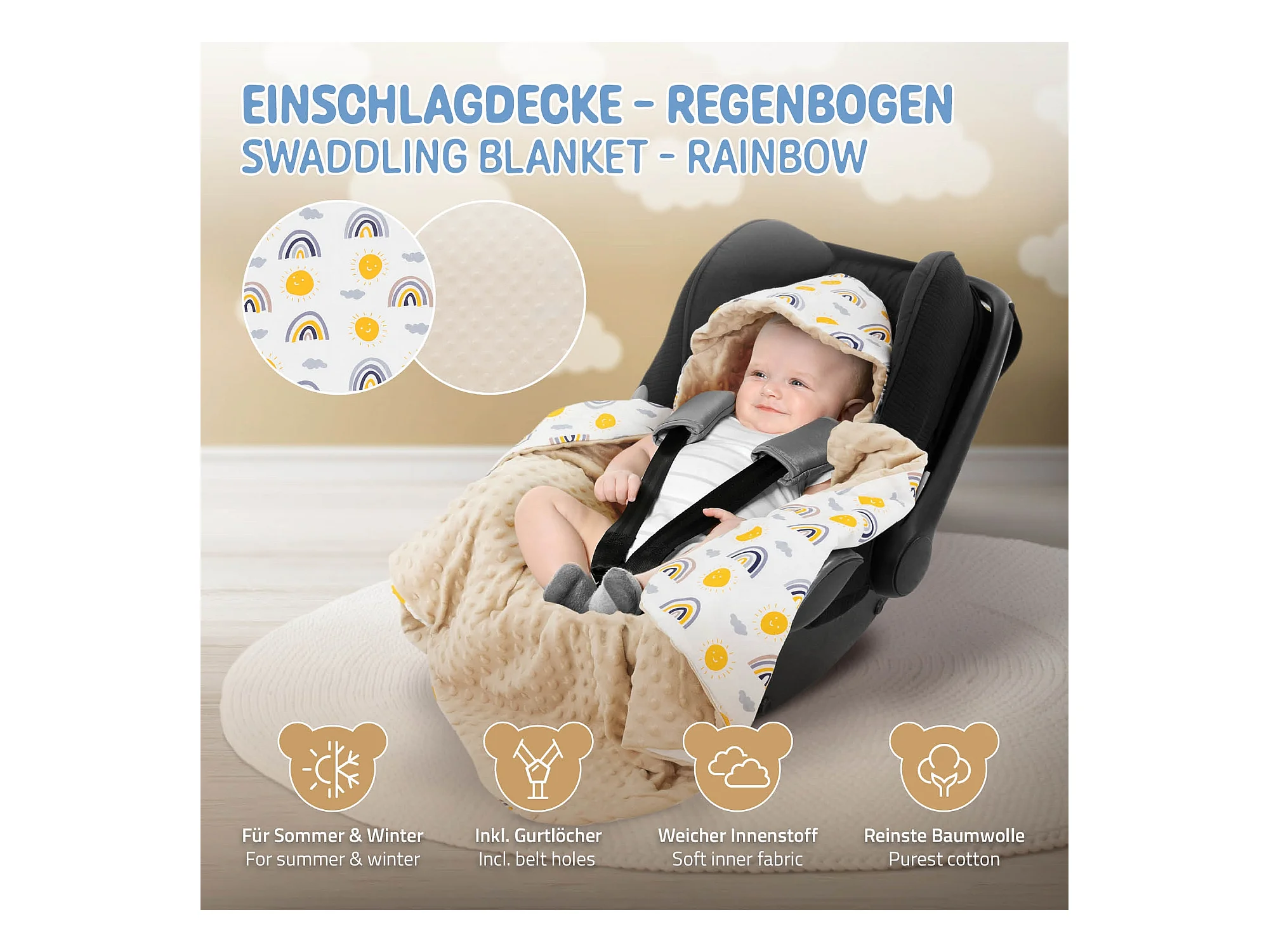 Couverture de bébé à capuche en coton siège auto/poussette arc-en-ciel/beige