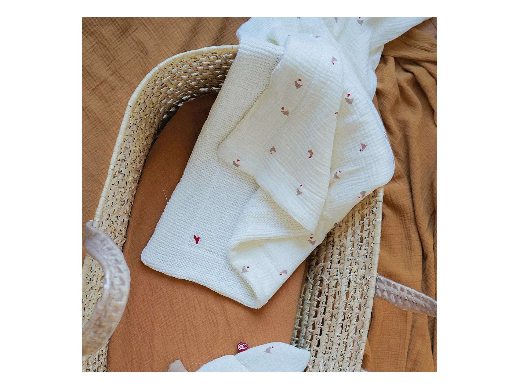 Couverture 100x75cm en coton blanc PROMENONS NOUS - Sauthon
