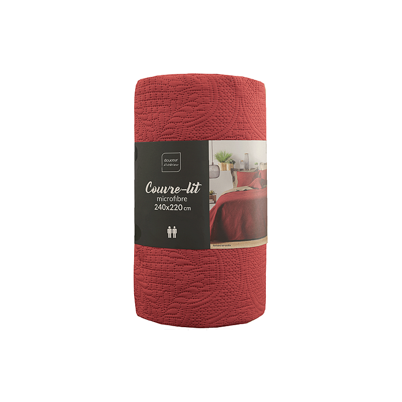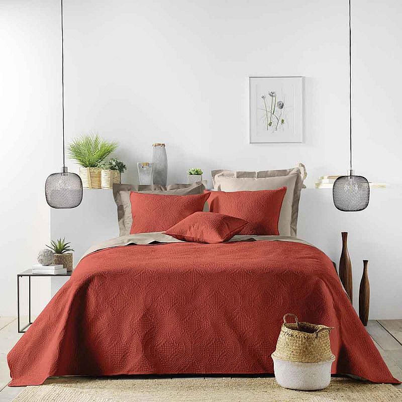 Couvre lit 2 personnes en microfibre matelassé "Romane" - Terracotta - 220 x 240 cm
