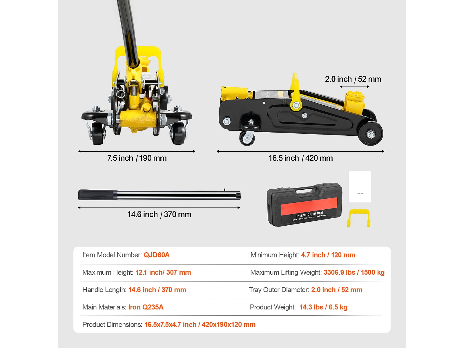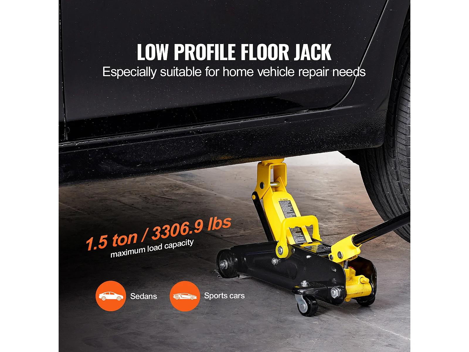 Cric Hydraulique SucceBuy Cric de Sol à Profil Bas de 1,5 Tonne, Hydraulique à Piston Unique Robuste