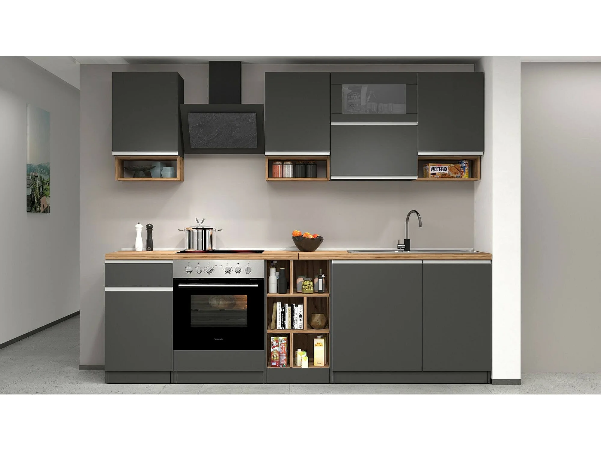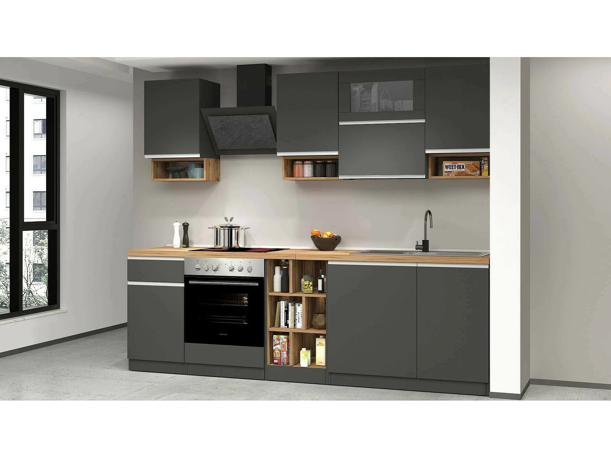 Cuisine Complète Attiko, Modulable Made in Italy, Noir Anthracite
